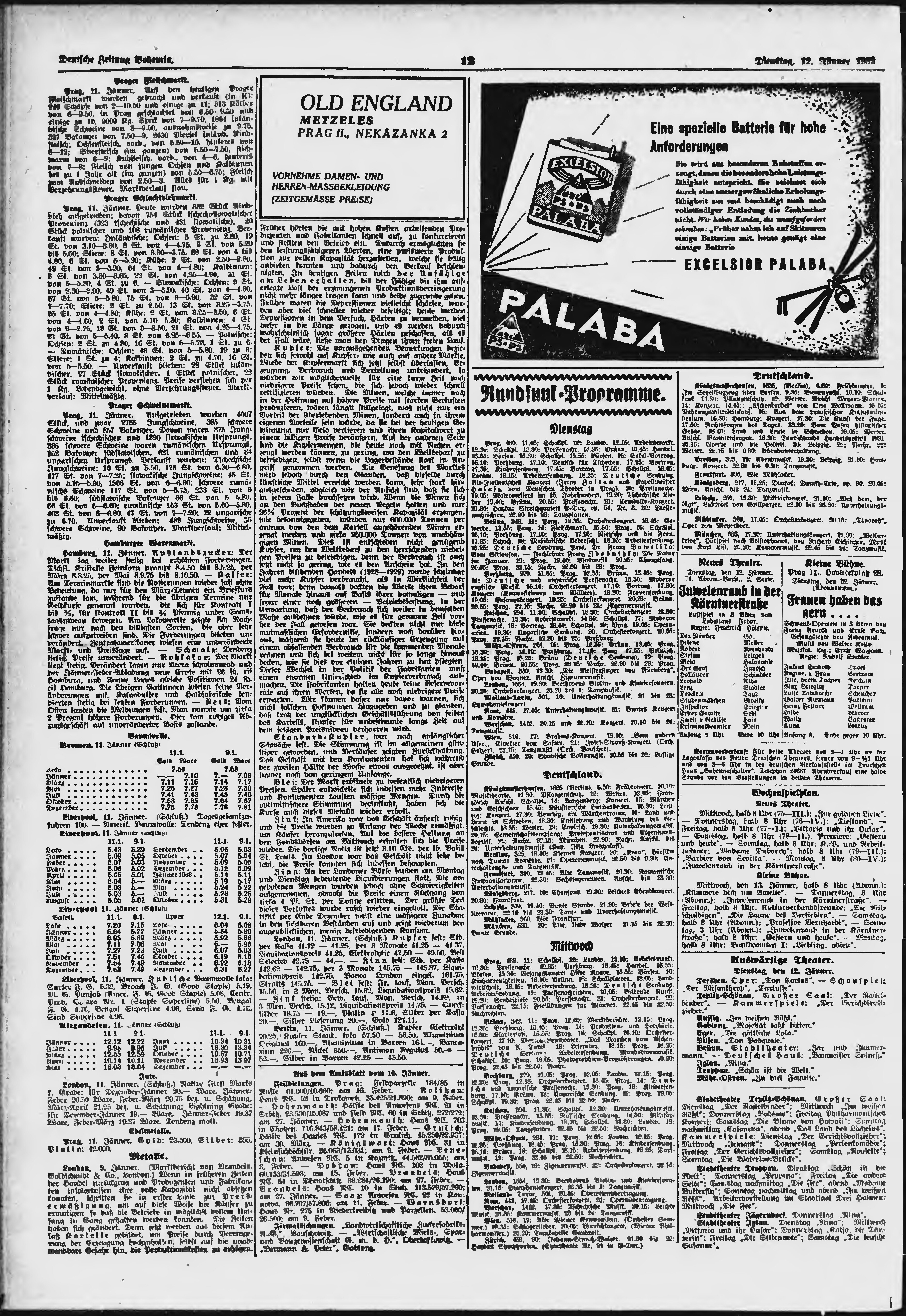* Datum vydání výtisku: 12.1.1932 Číslo výtisku: 10 Poznámky k výtisku: ranní vydání;