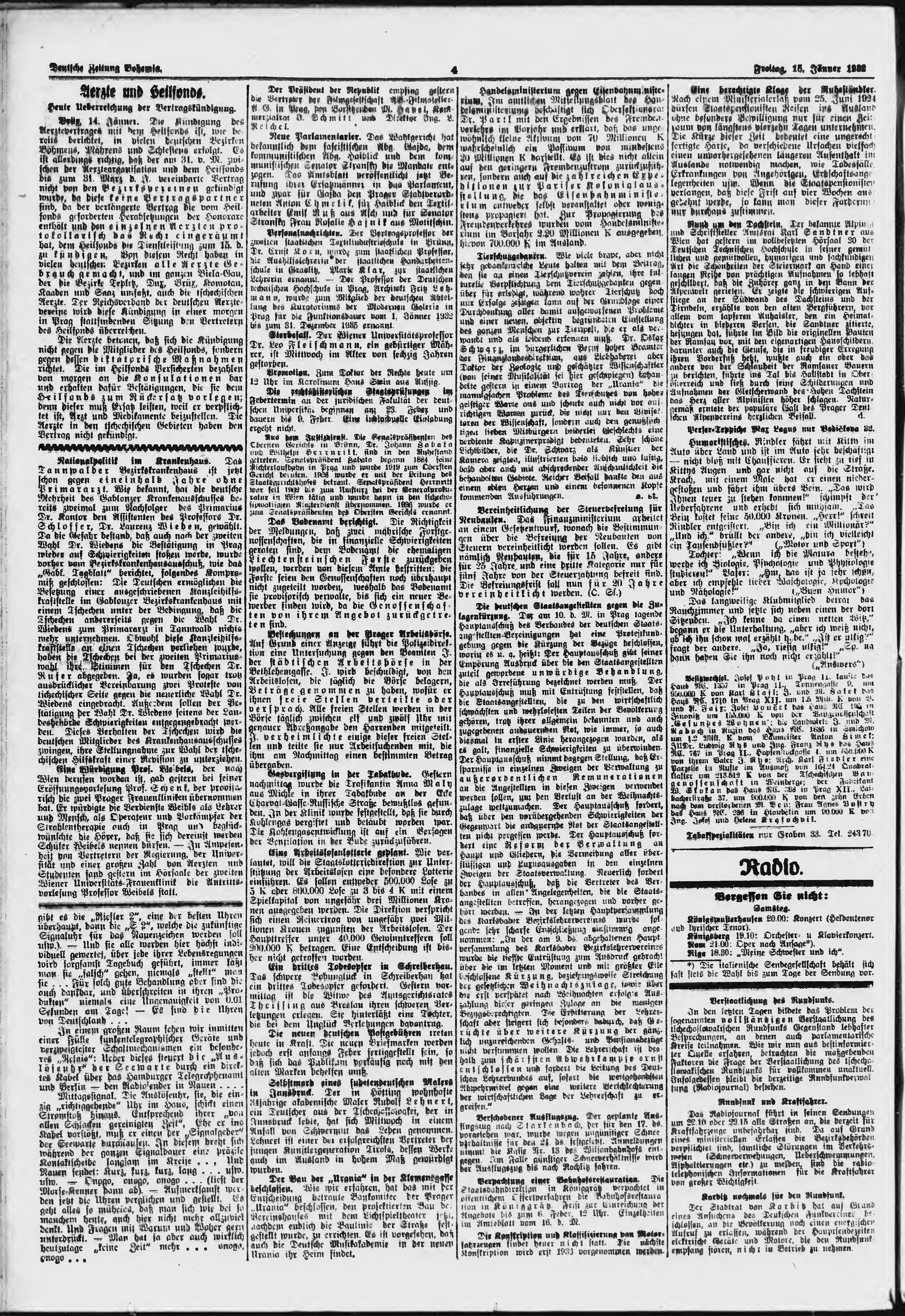 * Datum vydání výtisku: 15.1.1932 Číslo výtisku: 13 Poznámky k výtisku: ranní vydání;
