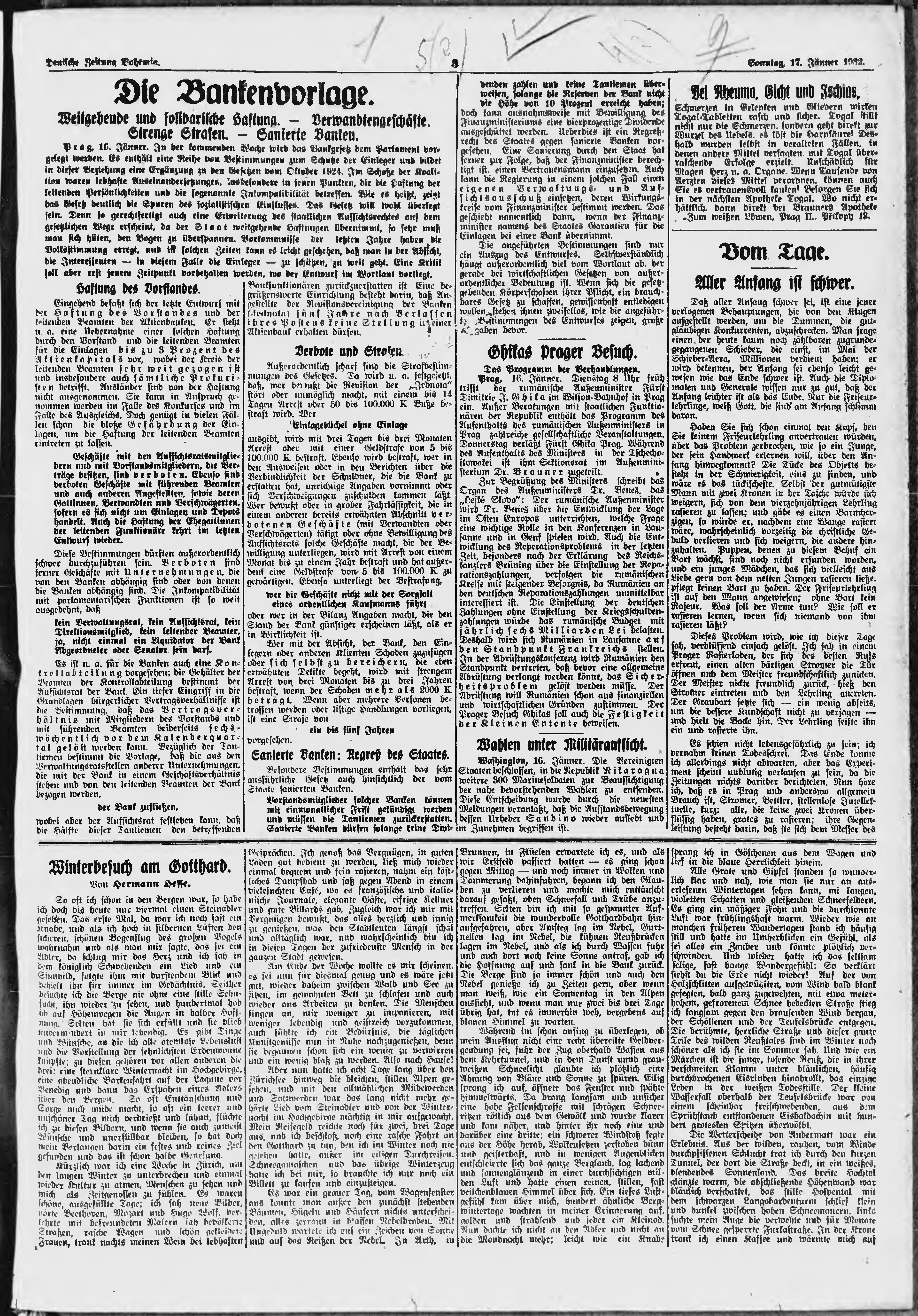 * Datum vydání výtisku: 17.1.1932 Číslo výtisku: 15 Poznámky k výtisku: ranní vydání;
