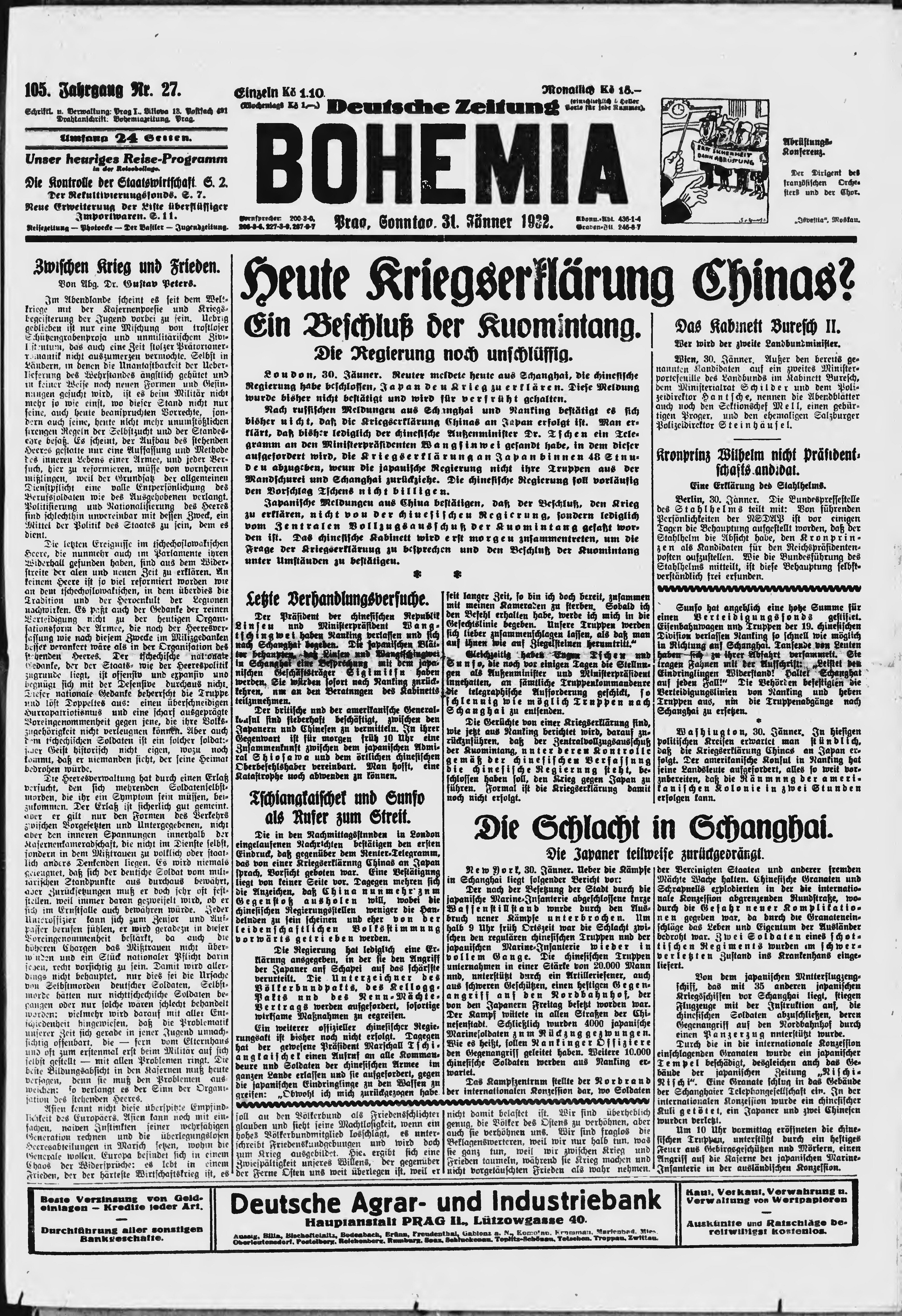 * Datum vydání výtisku: 31.1.1932 Číslo výtisku: 27 Poznámky k výtisku: ranní vydání;