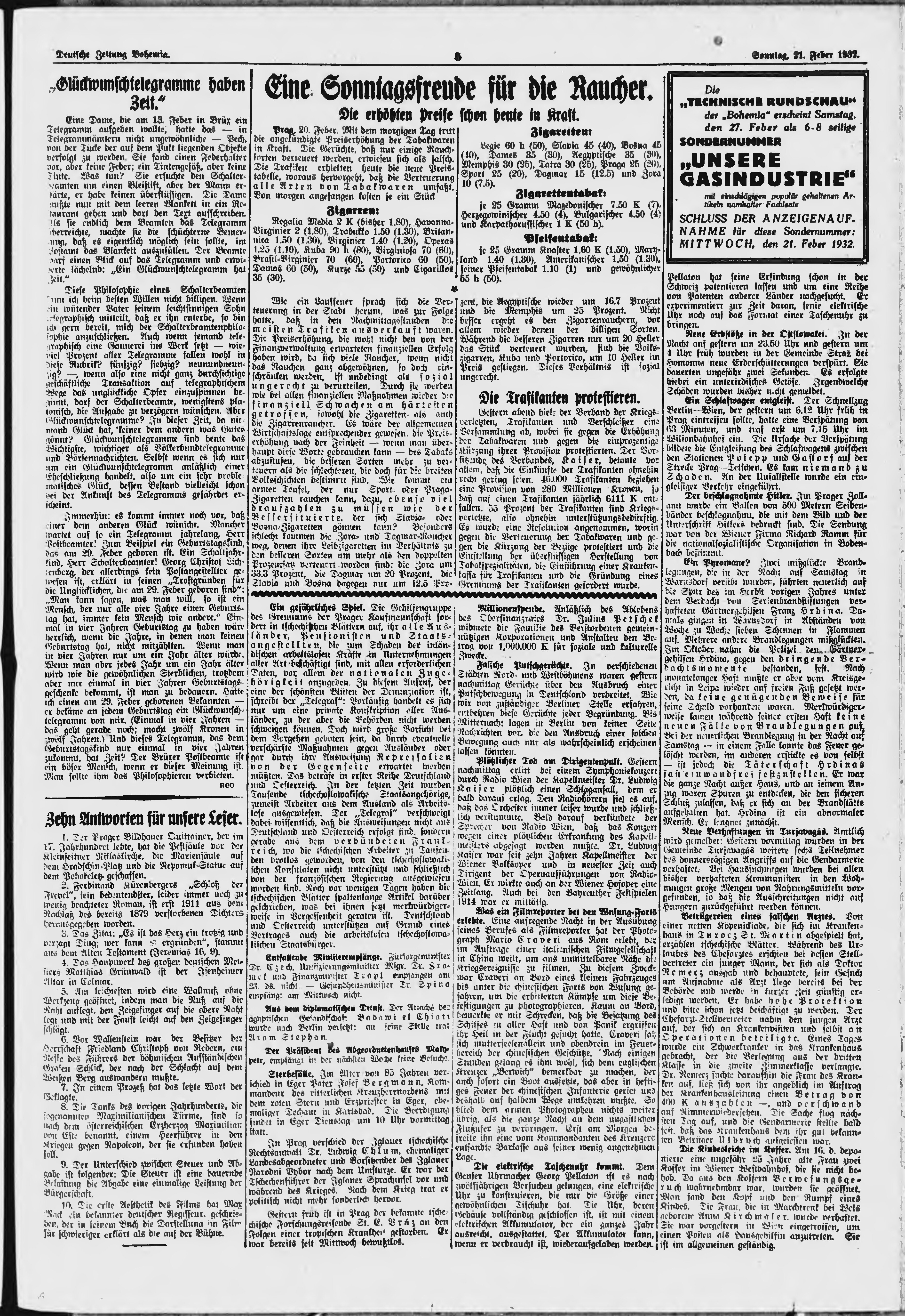 * Datum vydání výtisku: 21.2.1932 Číslo výtisku: 45 Poznámky k výtisku: ranní vydání;