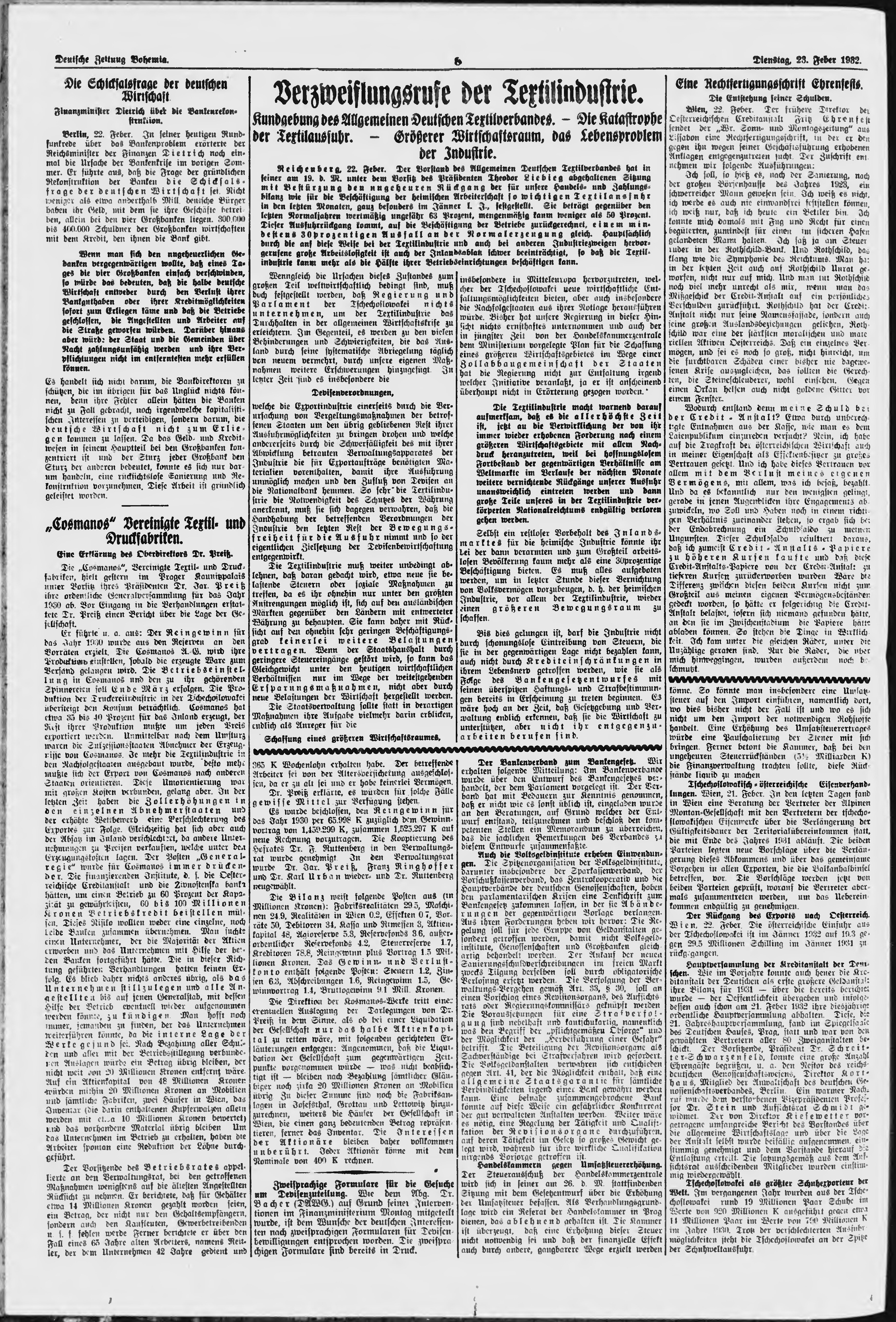 * Datum vydání výtisku: 23.2.1932 Číslo výtisku: 46 Poznámky k výtisku: ranní vydání;