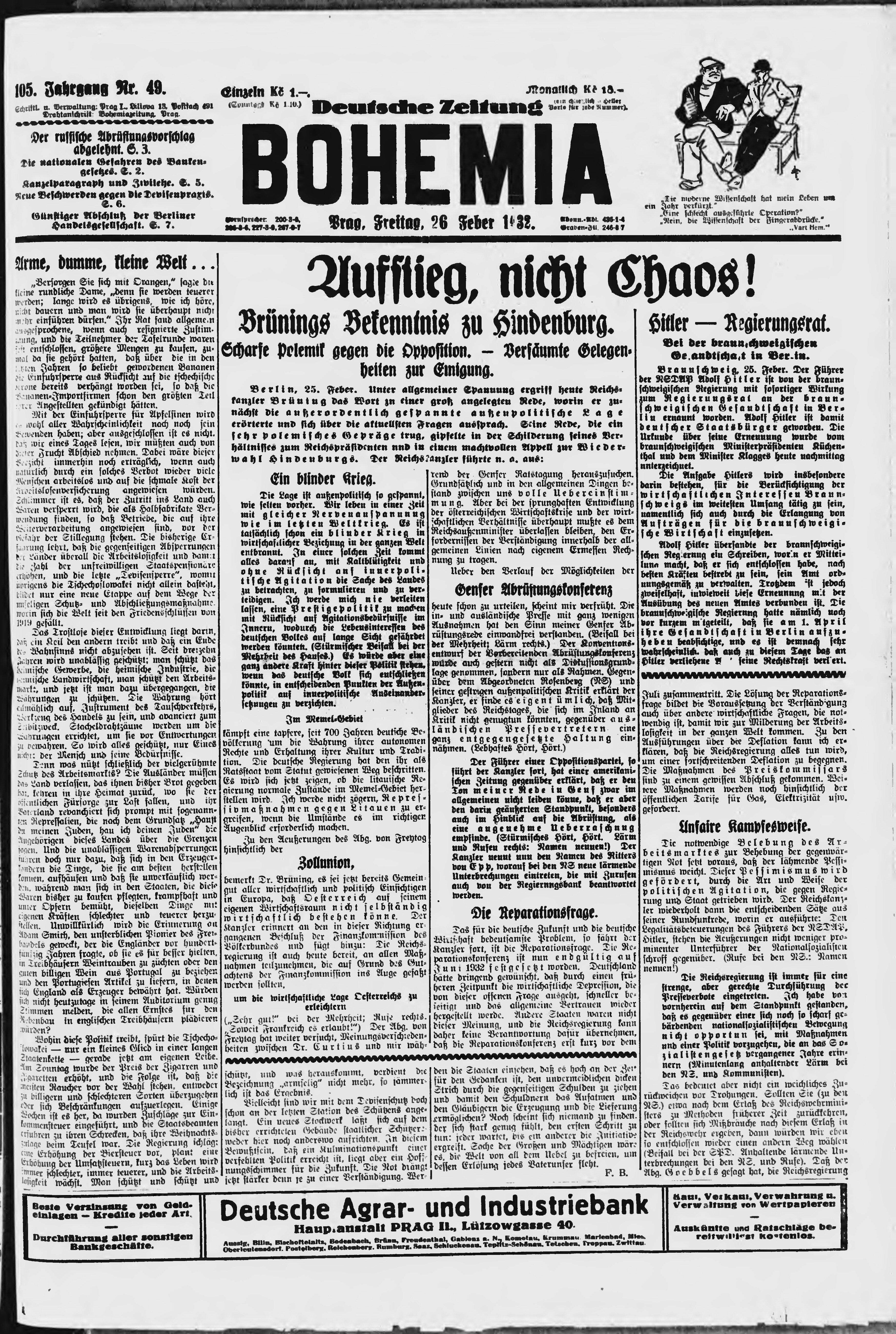 * Datum vydání výtisku: 26.2.1932 Číslo výtisku: 49 Poznámky k výtisku: ranní vydání;