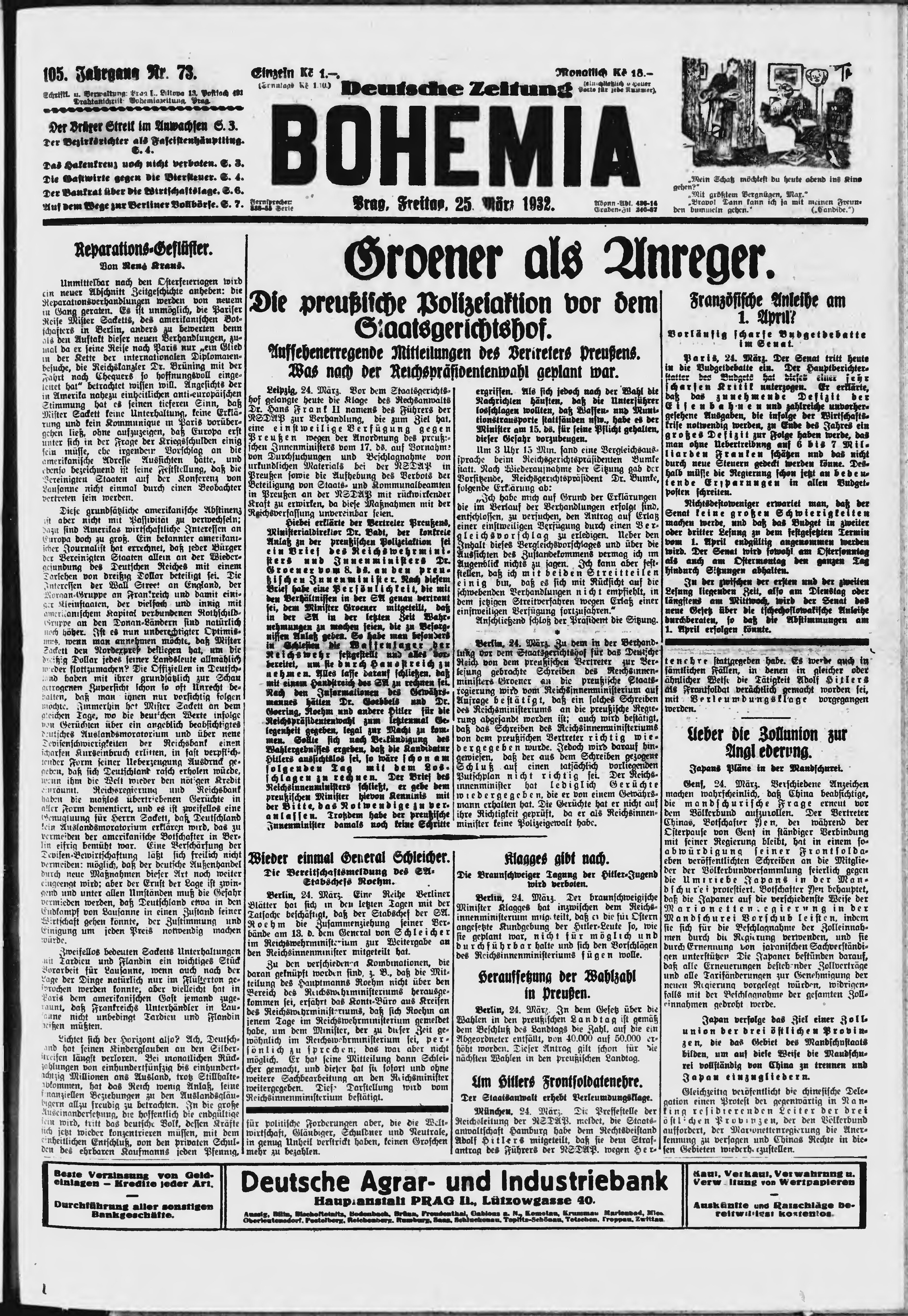 * Datum vydání výtisku: 25.3.1932 Číslo výtisku: 73 Poznámky k výtisku: ranní vydání;