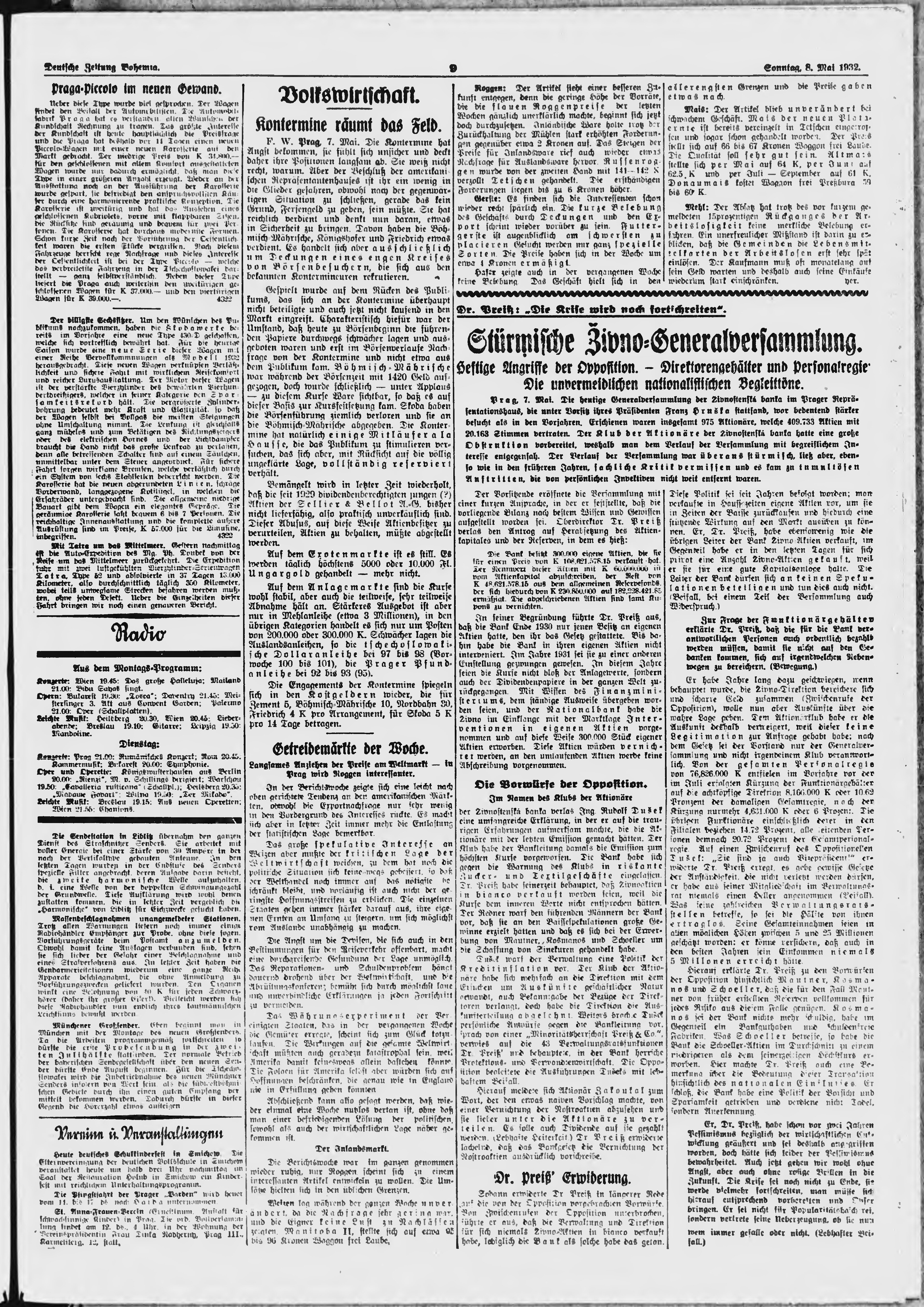 * Datum vydání výtisku: 8.5.1932 Číslo výtisku: 110 Poznámky k výtisku: ranní vydání;