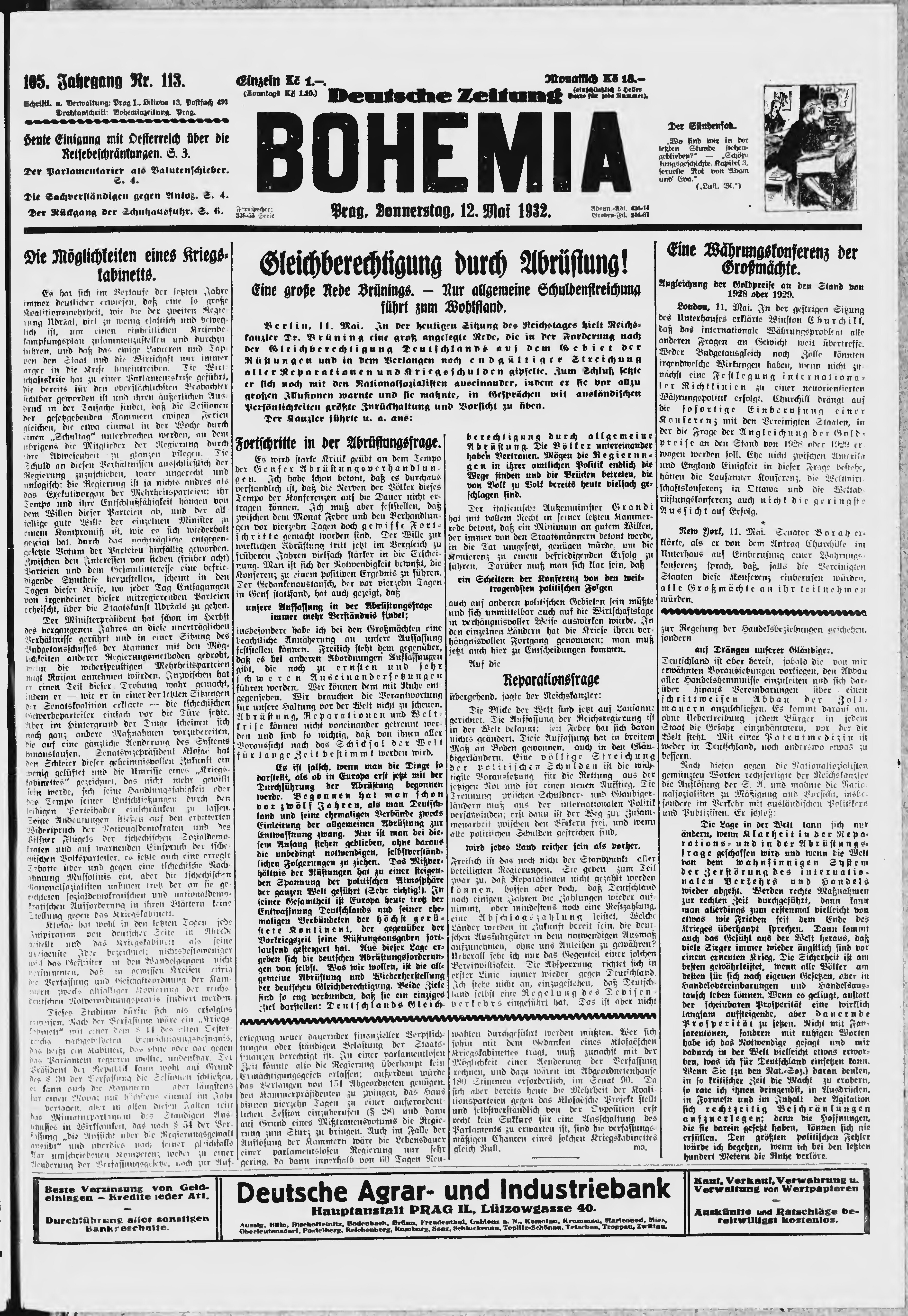 * Datum vydání výtisku: 12.5.1932 Číslo výtisku: 113 Poznámky k výtisku: ranní vydání;