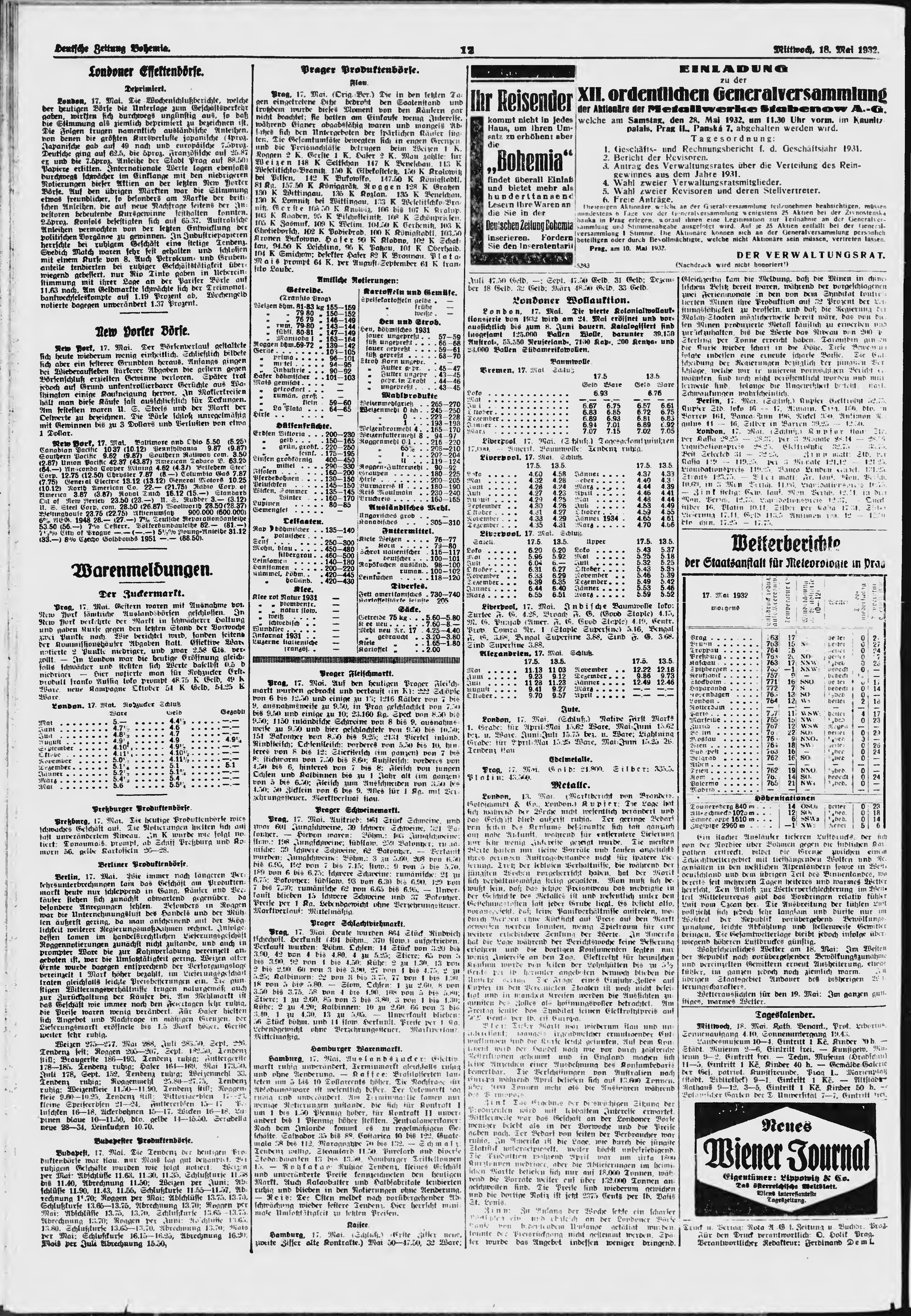 * Datum vydání výtisku: 18.5.1932 Číslo výtisku: 117 Poznámky k výtisku: ranní vydání;