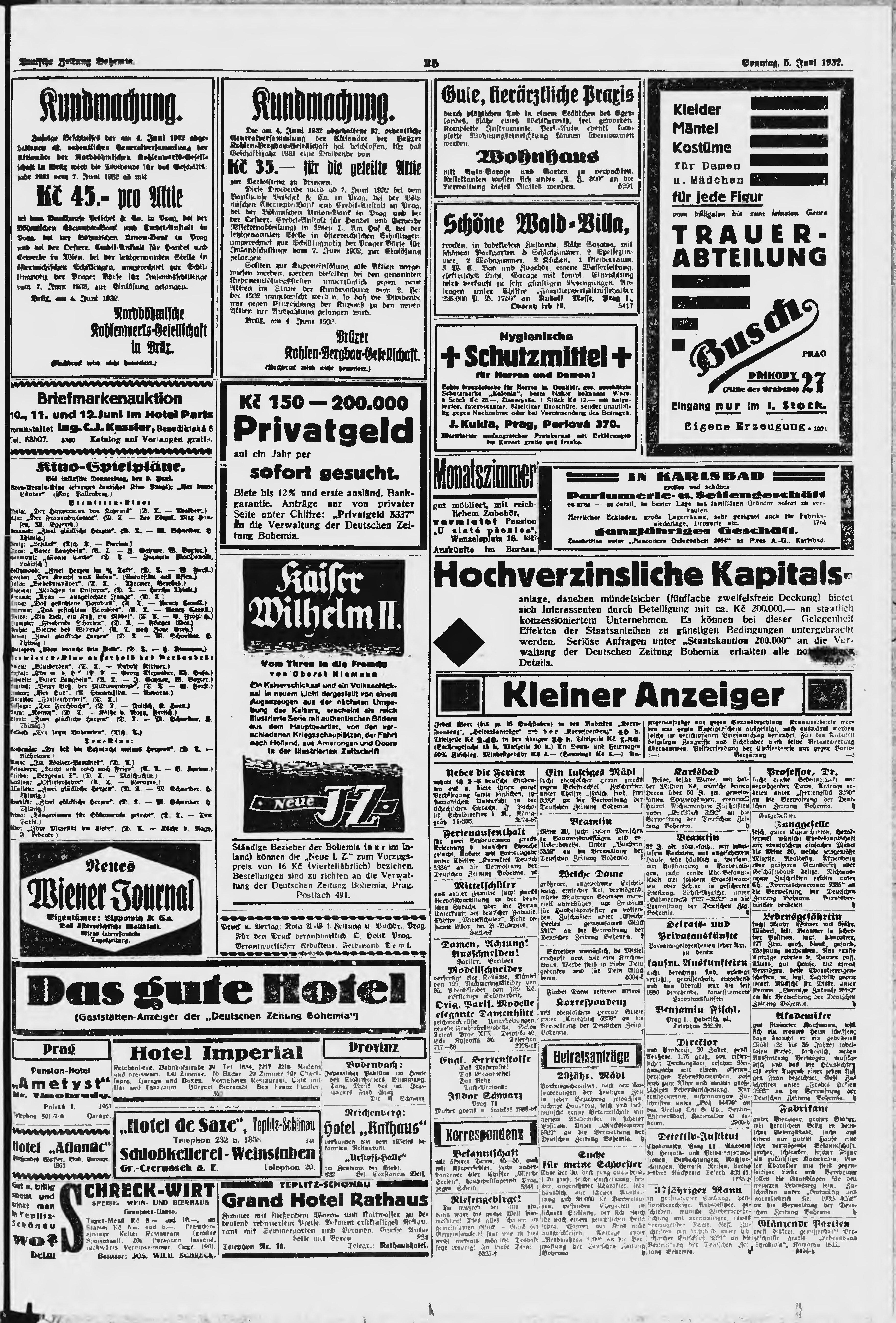 * Datum vydání výtisku: 5.6.1932 Číslo výtisku: 133 Poznámky k výtisku: ranní vydání;