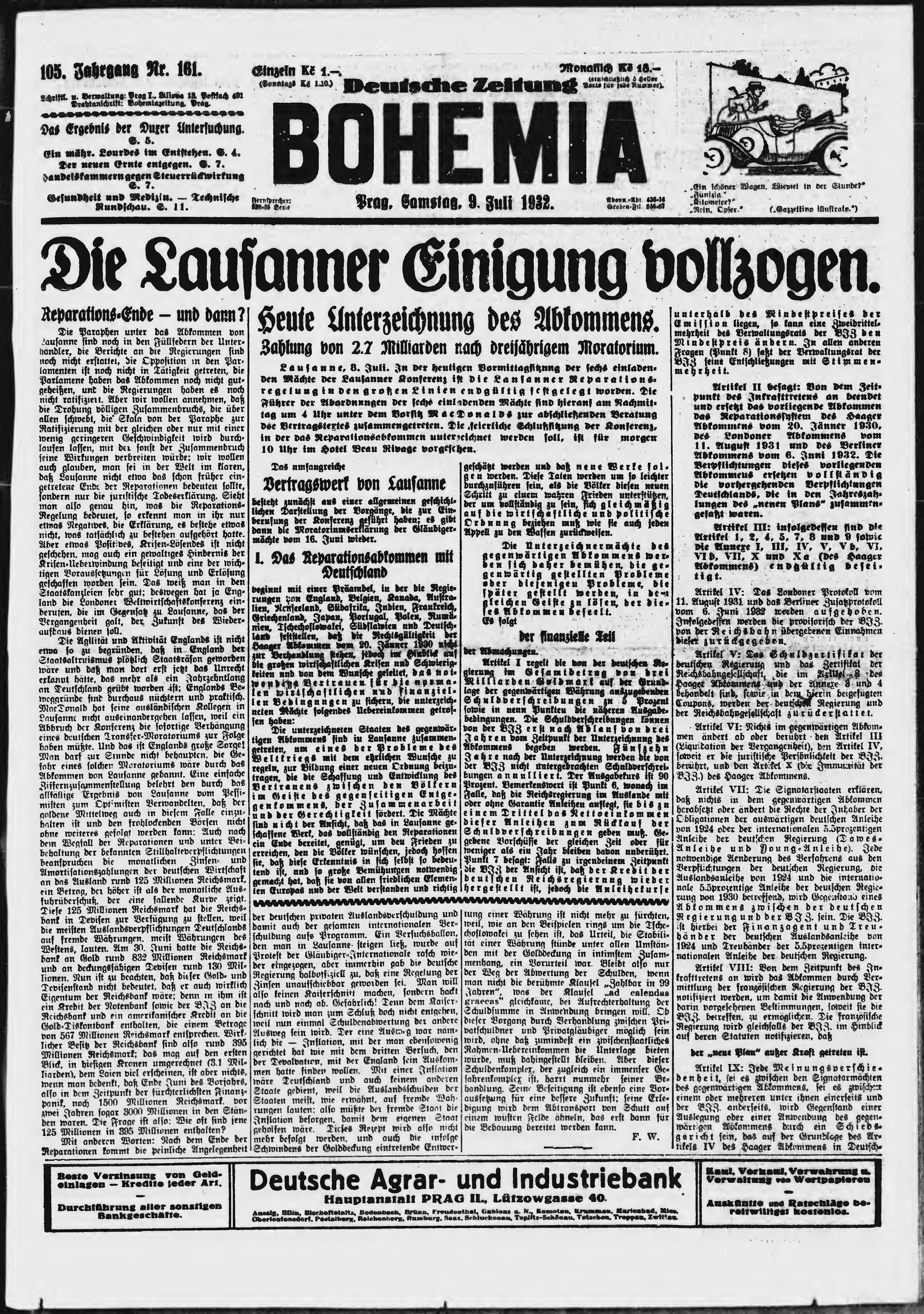 * Datum vydání výtisku: 9.7.1932 Číslo výtisku: 161 Poznámky k výtisku: ranní vydání;