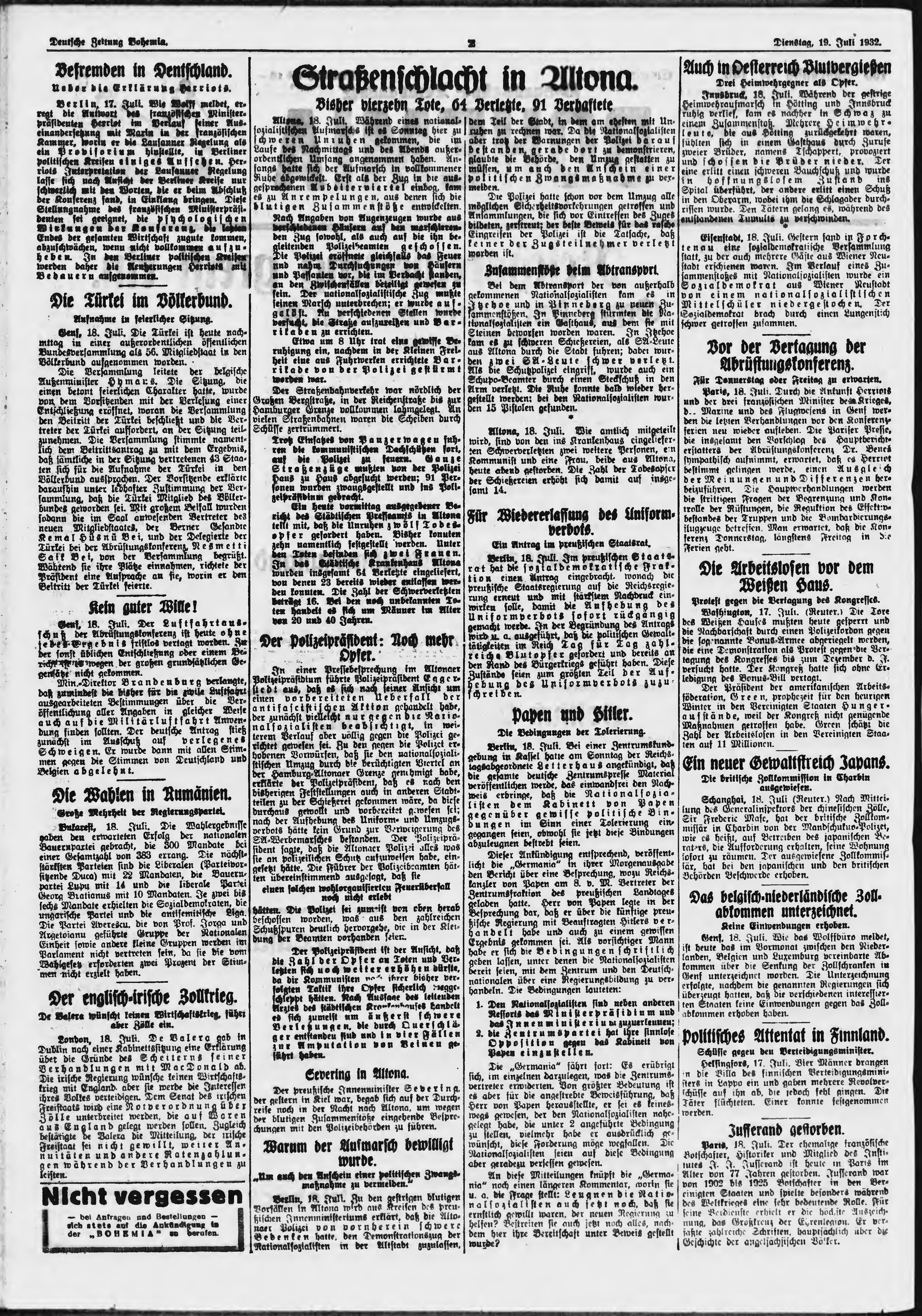 * Datum vydání výtisku: 19.7.1932 Číslo výtisku: 169 Poznámky k výtisku: ranní vydání;