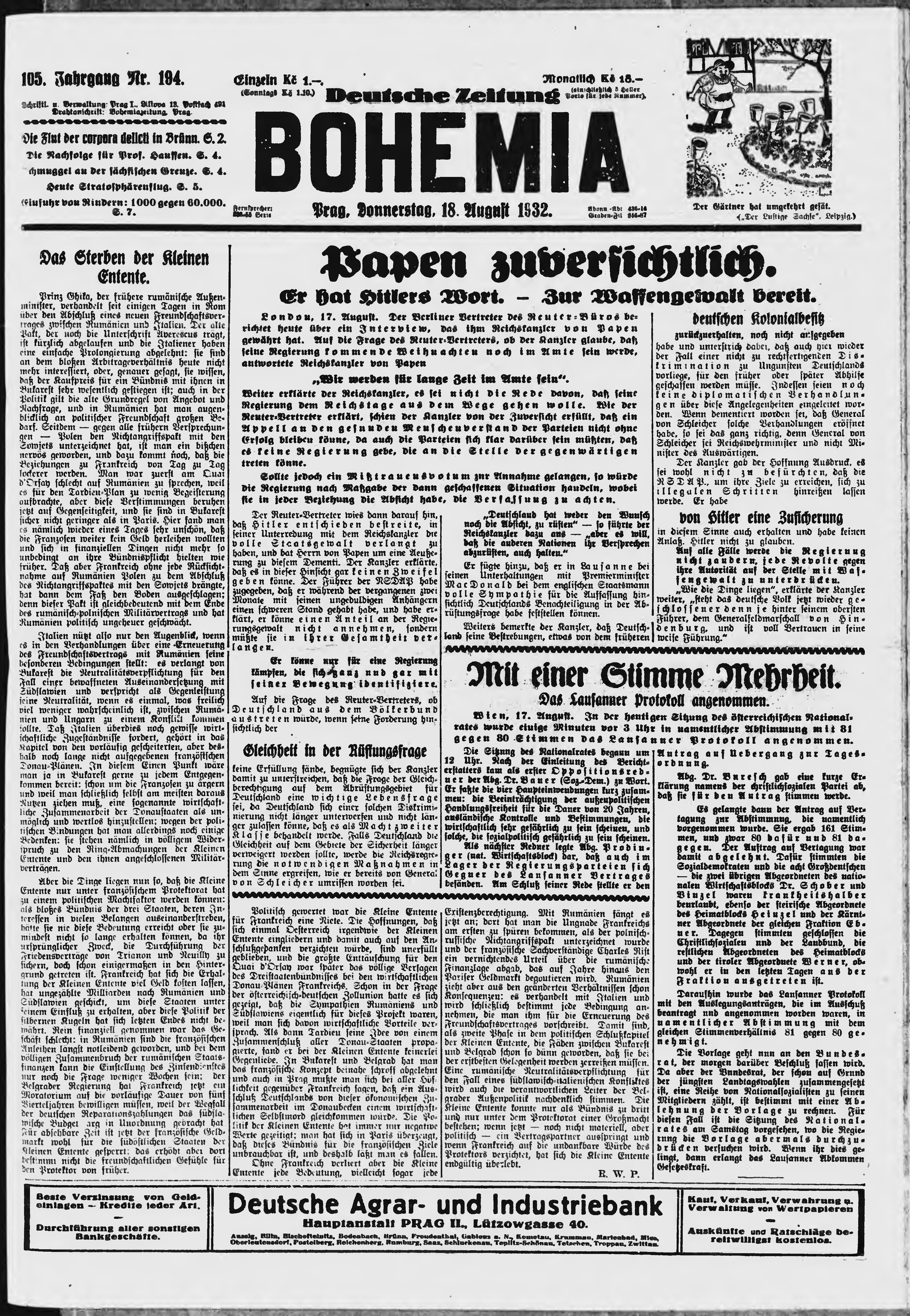* Datum vydání výtisku: 18.8.1932 Číslo výtisku: 194 Poznámky k výtisku: ranní vydání;