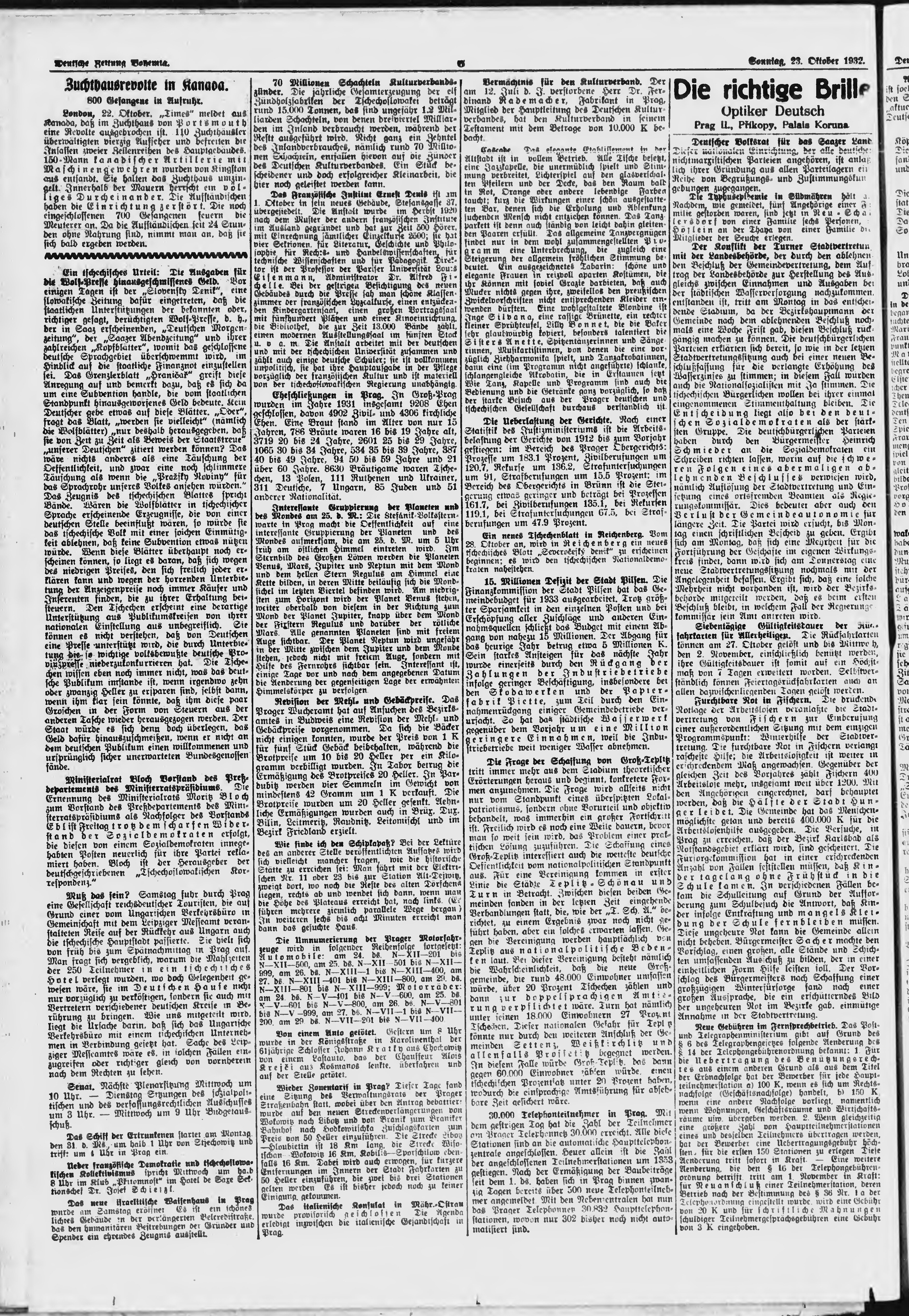 * Datum vydání výtisku: 23.10.1932 Číslo výtisku: 251 Poznámky k výtisku: ranní vydání;