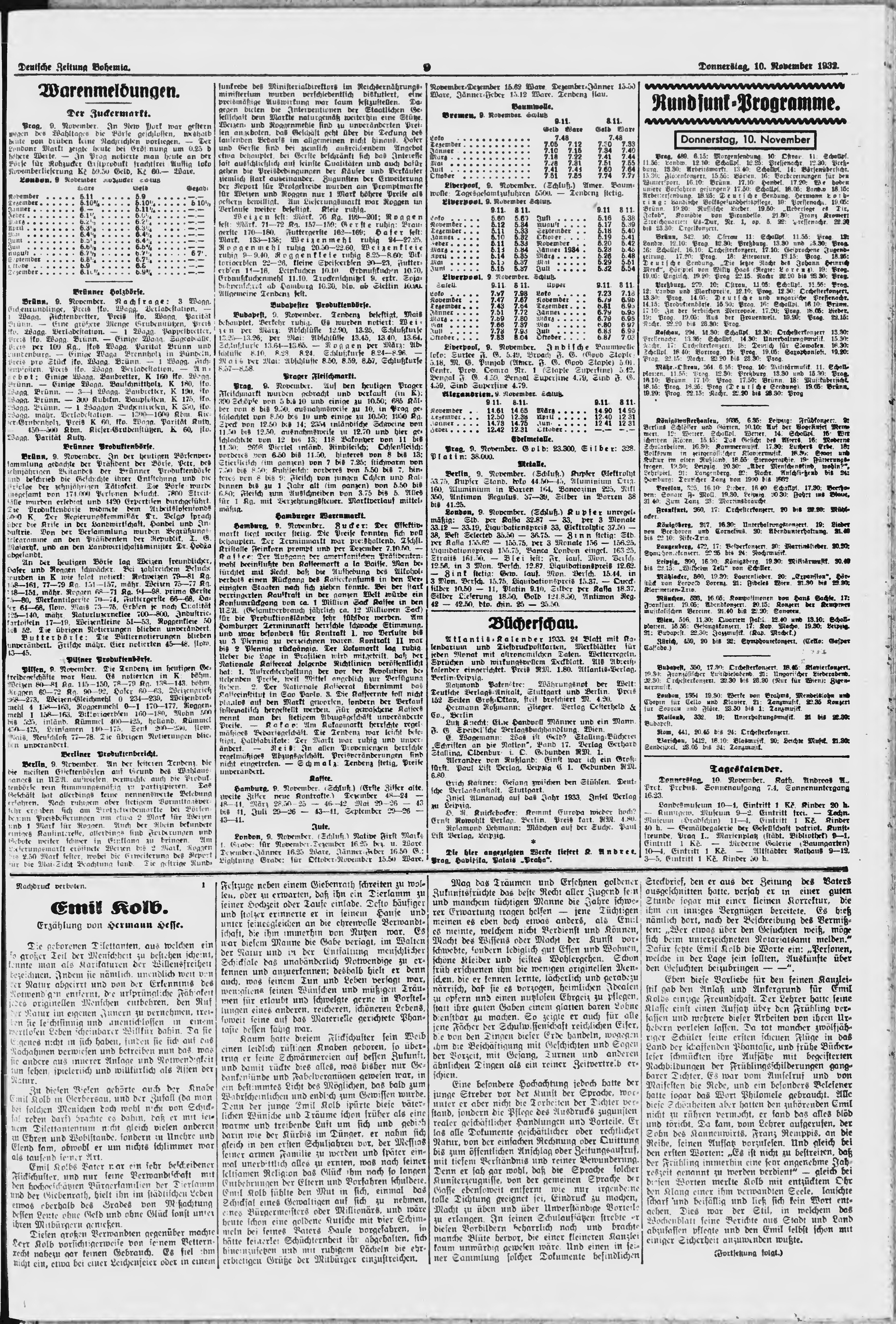 * Datum vydání výtisku: 10.11.1932 Číslo výtisku: 265 Poznámky k výtisku: ranní vydání;