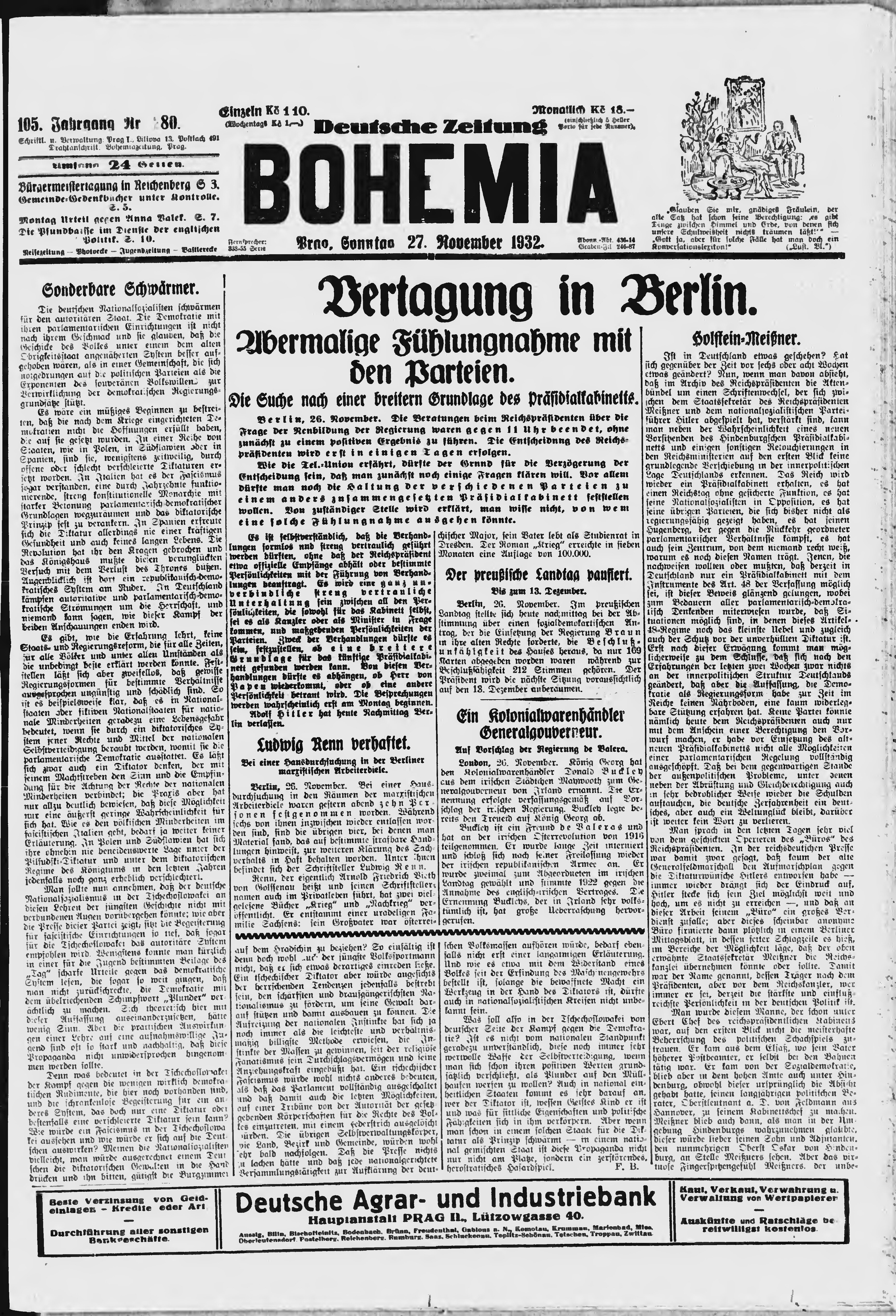 * Datum vydání výtisku: 27.11.1932 Číslo výtisku: 280 Poznámky k výtisku: ranní vydání;