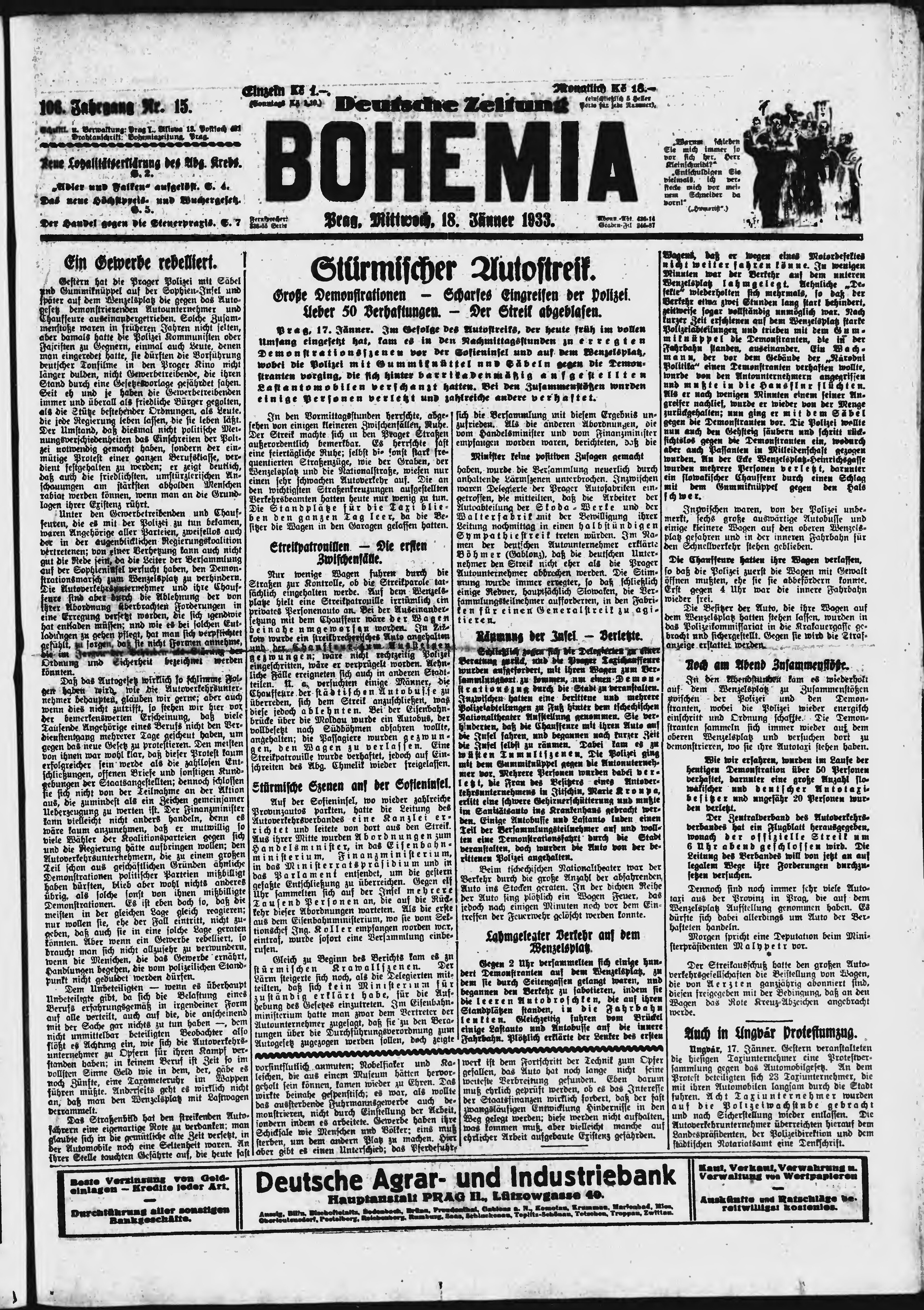 * Datum vydání výtisku: 18.1.1933 Číslo výtisku: 15 Poznámky k výtisku: ranní vydání;