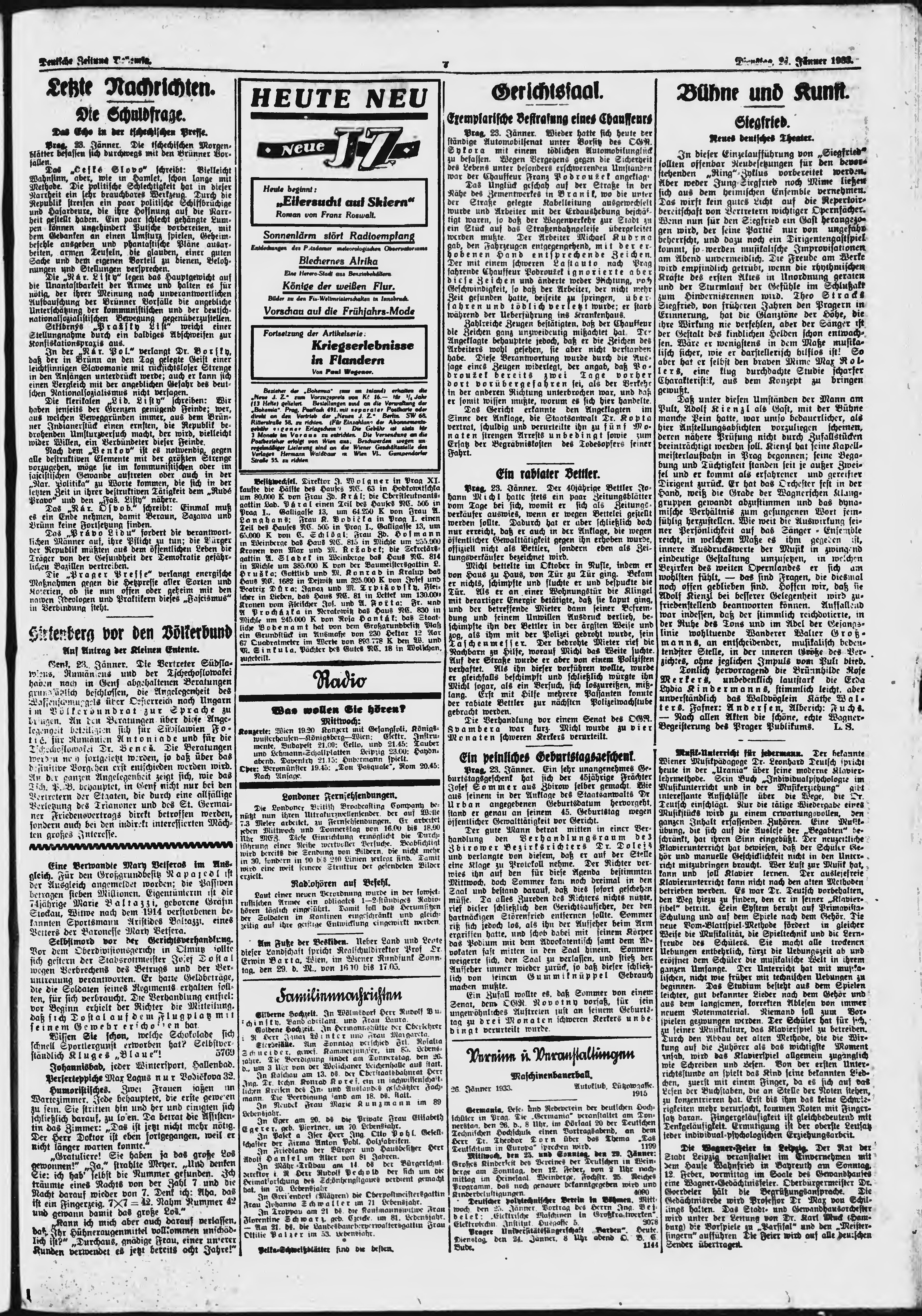 * Datum vydání výtisku: 24.1.1933 Číslo výtisku: 20 Poznámky k výtisku: ranní vydání;