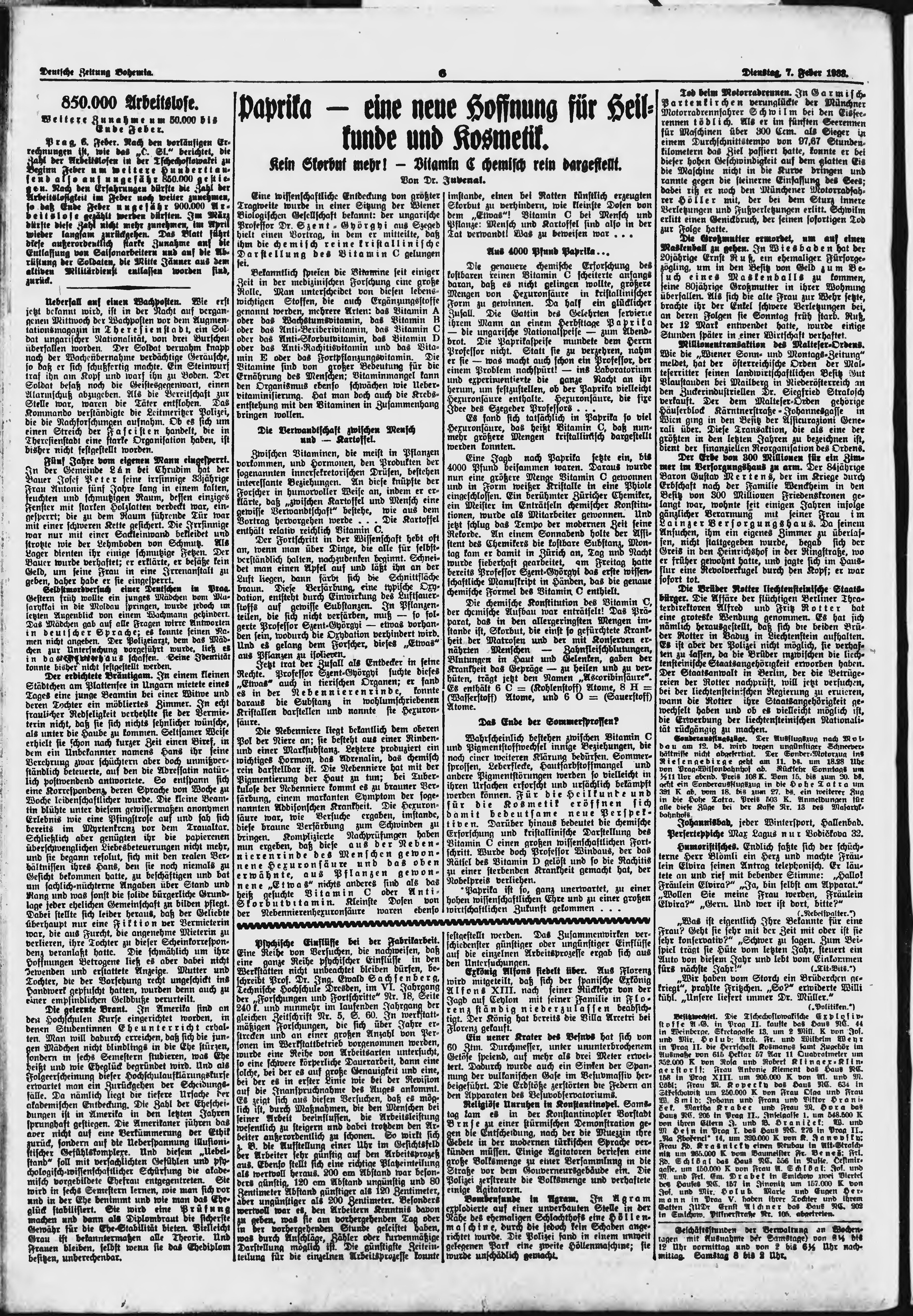 * Datum vydání výtisku: 7.2.1933 Číslo výtisku: 32 Poznámky k výtisku: ranní vydání;