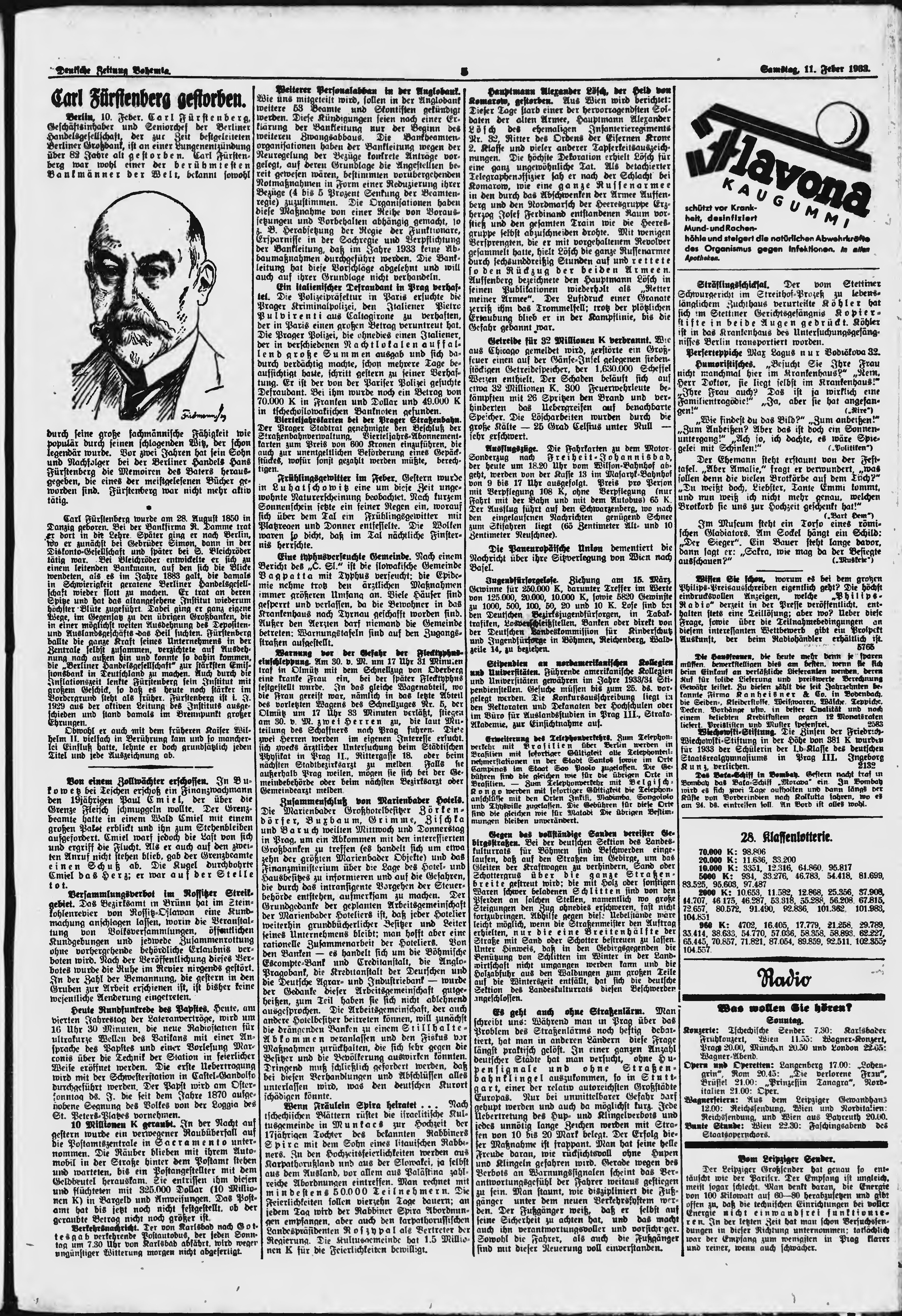 * Datum vydání výtisku: 11.2.1933 Číslo výtisku: 36 Poznámky k výtisku: ranní vydání;
