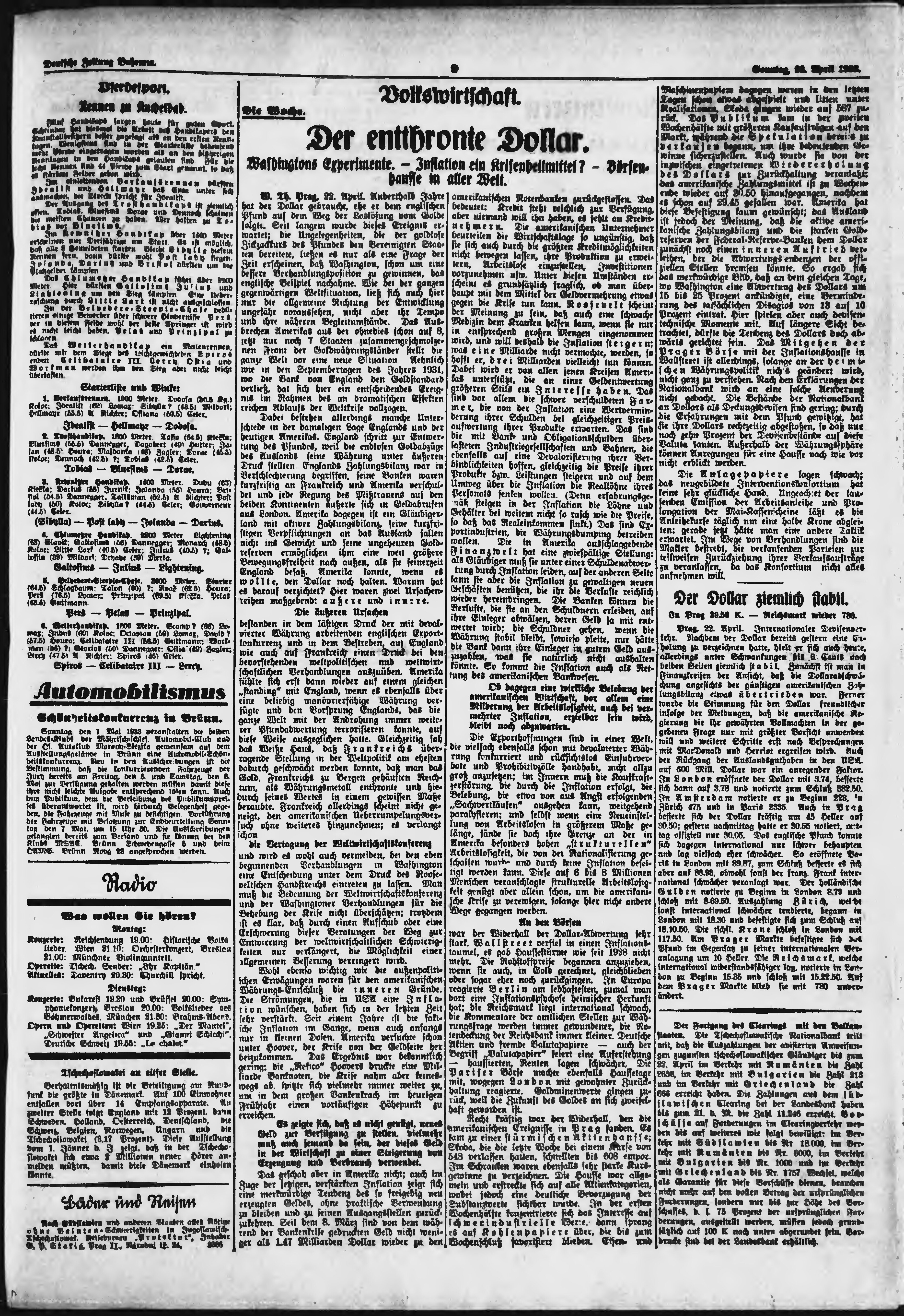 * Datum vydání výtisku: 23.4.1933 Číslo výtisku: 96 Poznámky k výtisku: ranní vydání;