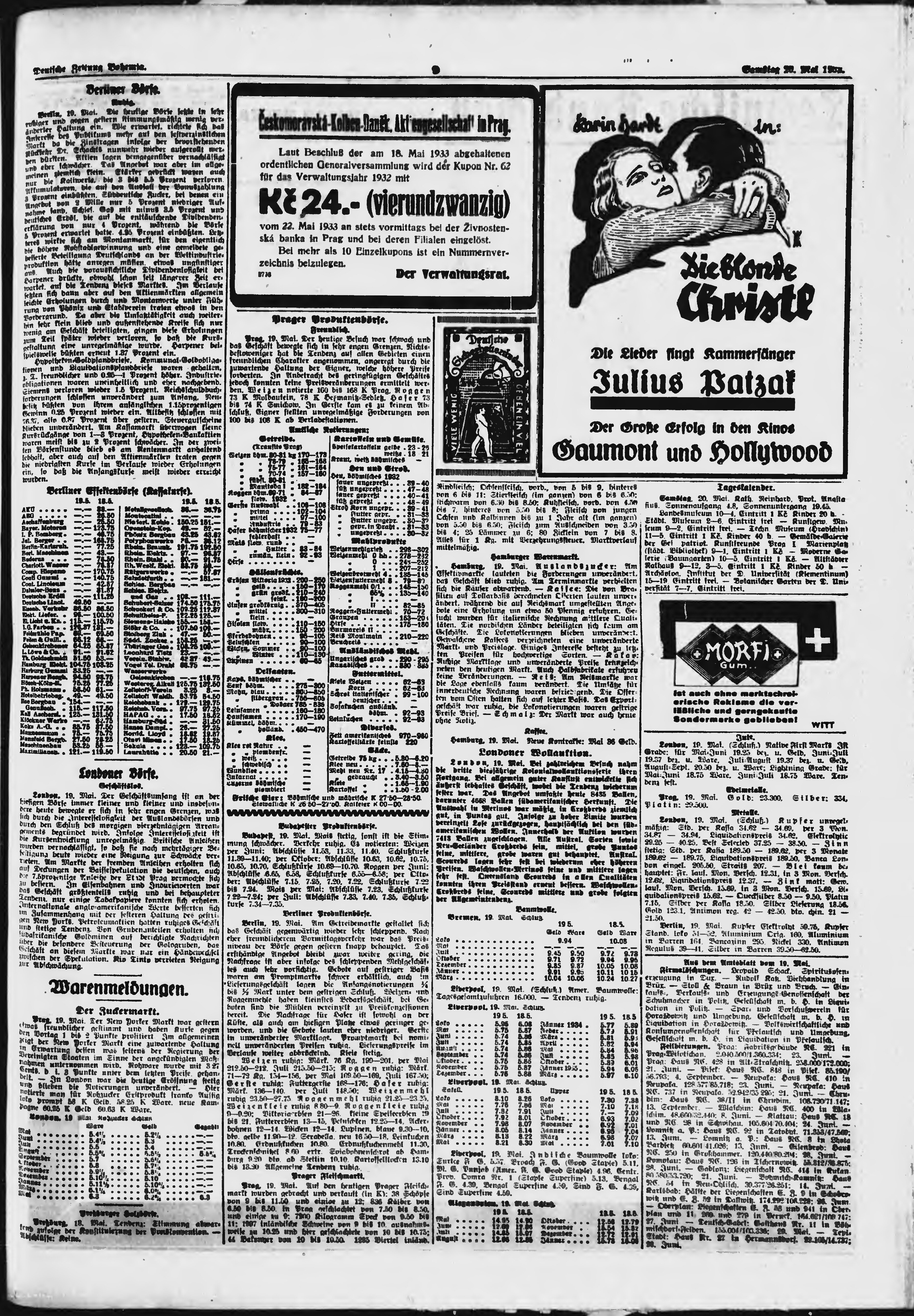 * Datum vydání výtisku: 20.5.1933 Číslo výtisku: 118 Poznámky k výtisku: ranní vydání;