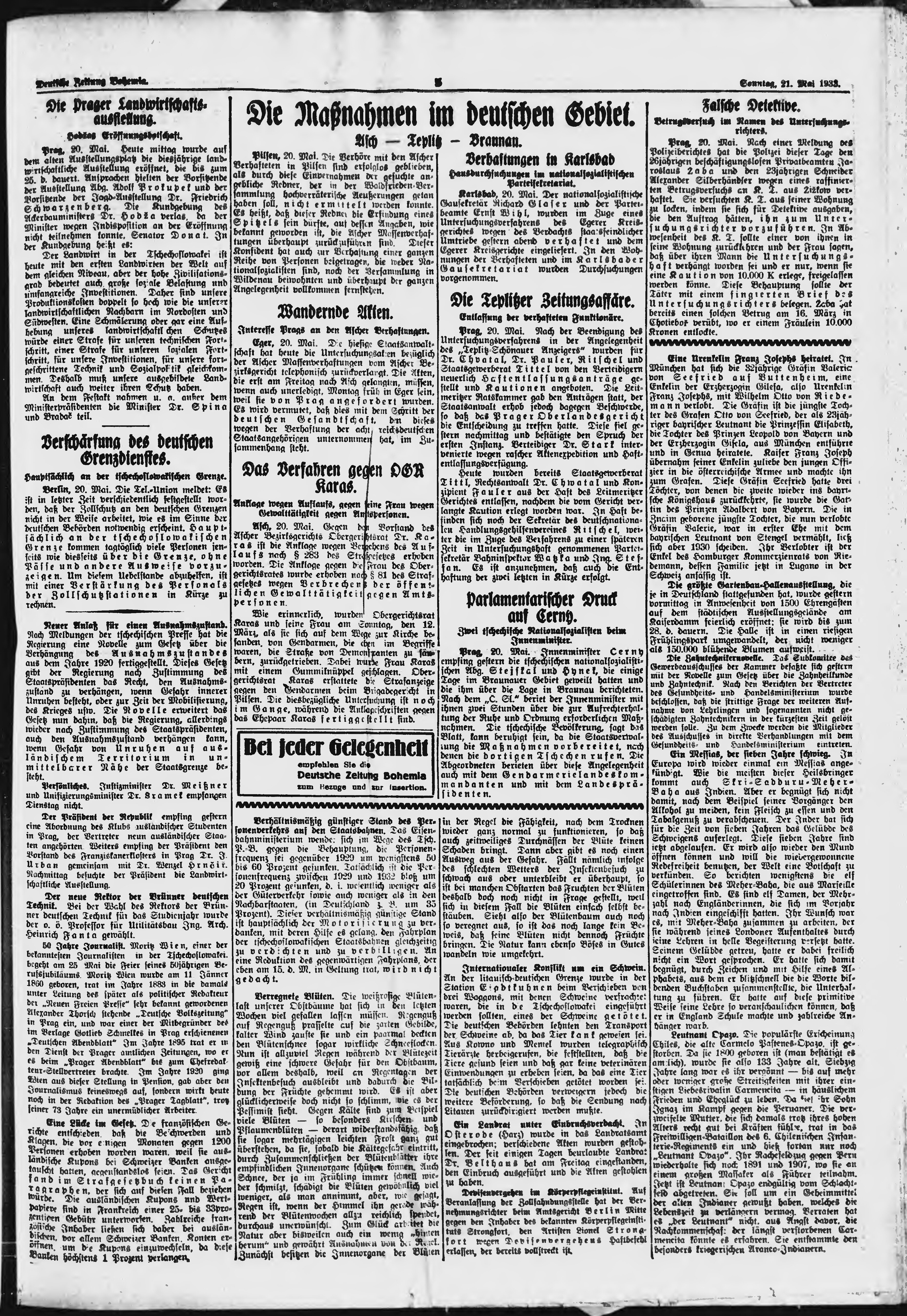 * Datum vydání výtisku: 21.5.1933 Číslo výtisku: 119 Poznámky k výtisku: ranní vydání;