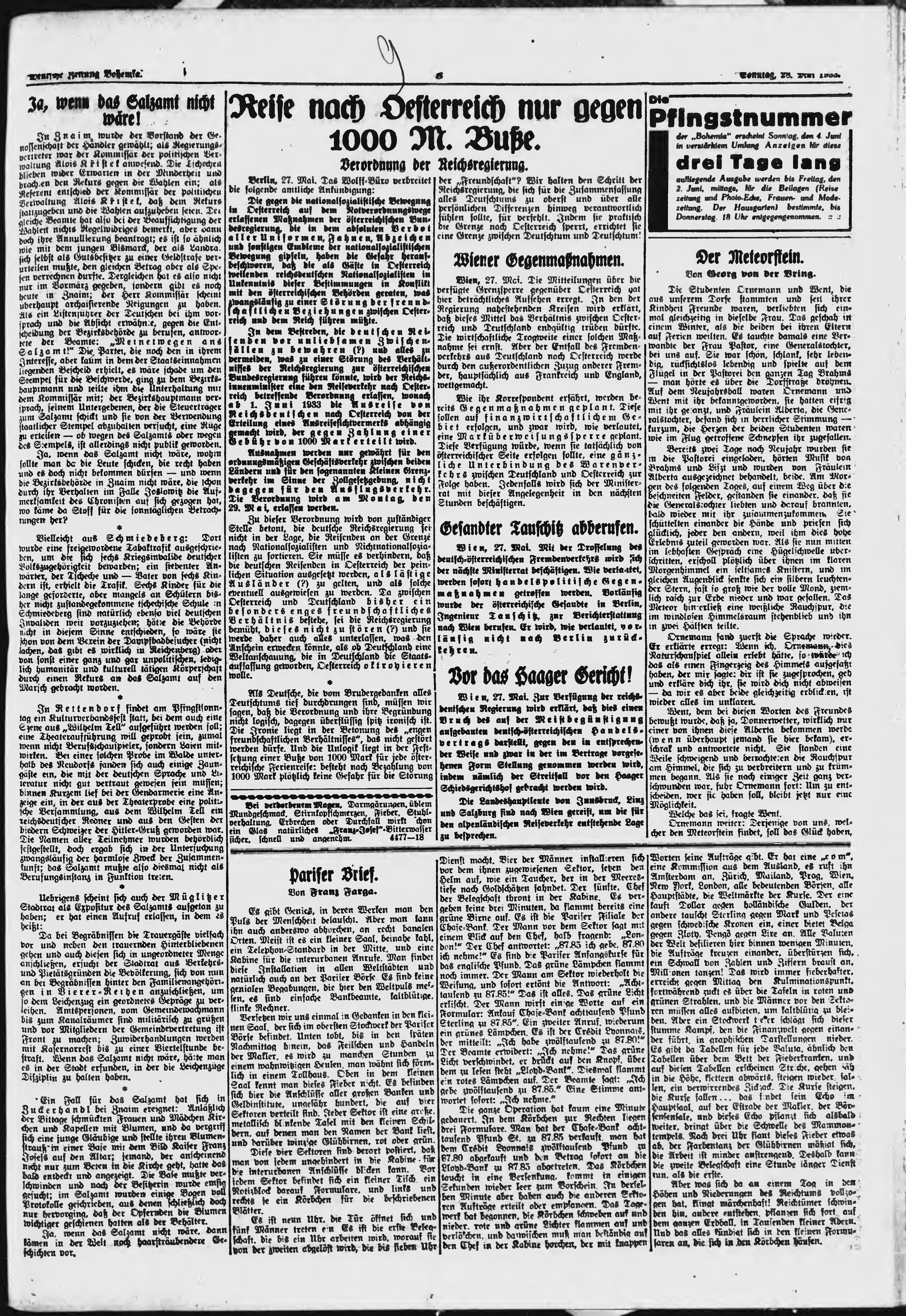 * Datum vydání výtisku: 28.5.1933 Číslo výtisku: 125 Poznámky k výtisku: ranní vydání;