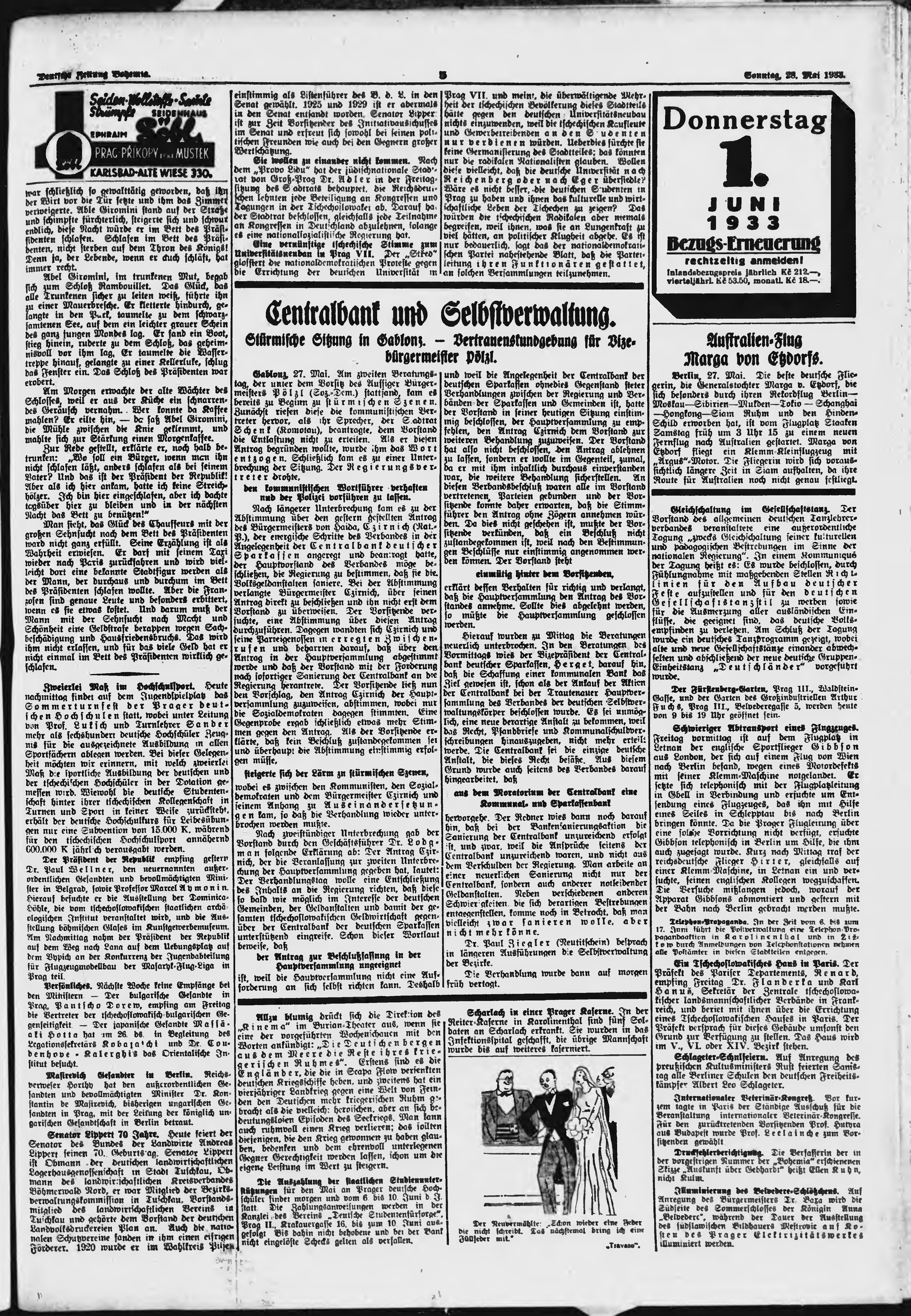 * Datum vydání výtisku: 28.5.1933 Číslo výtisku: 125 Poznámky k výtisku: ranní vydání;