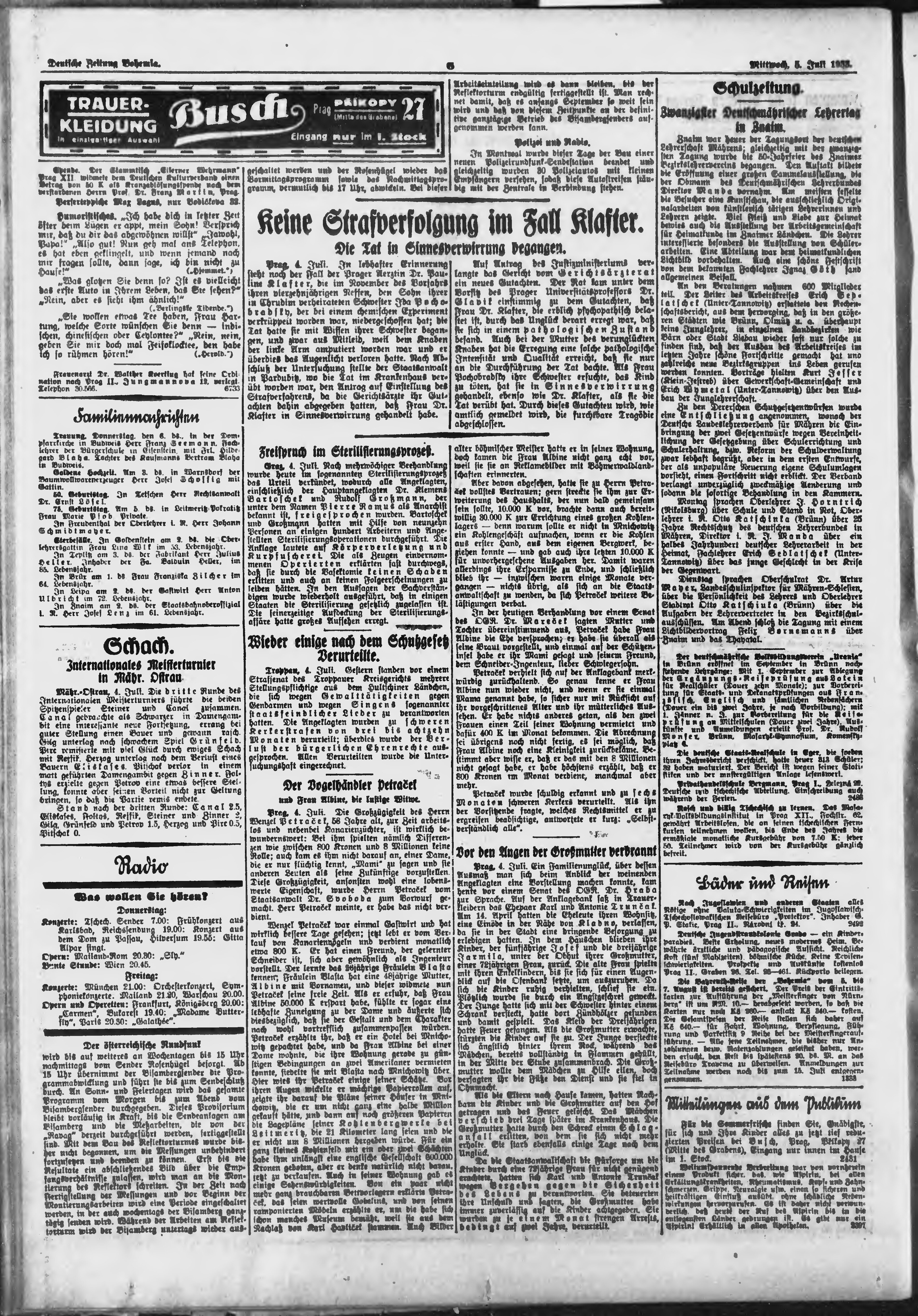 * Datum vydání výtisku: 5.7.1933 Číslo výtisku: 155 Poznámky k výtisku: ranní vydání;