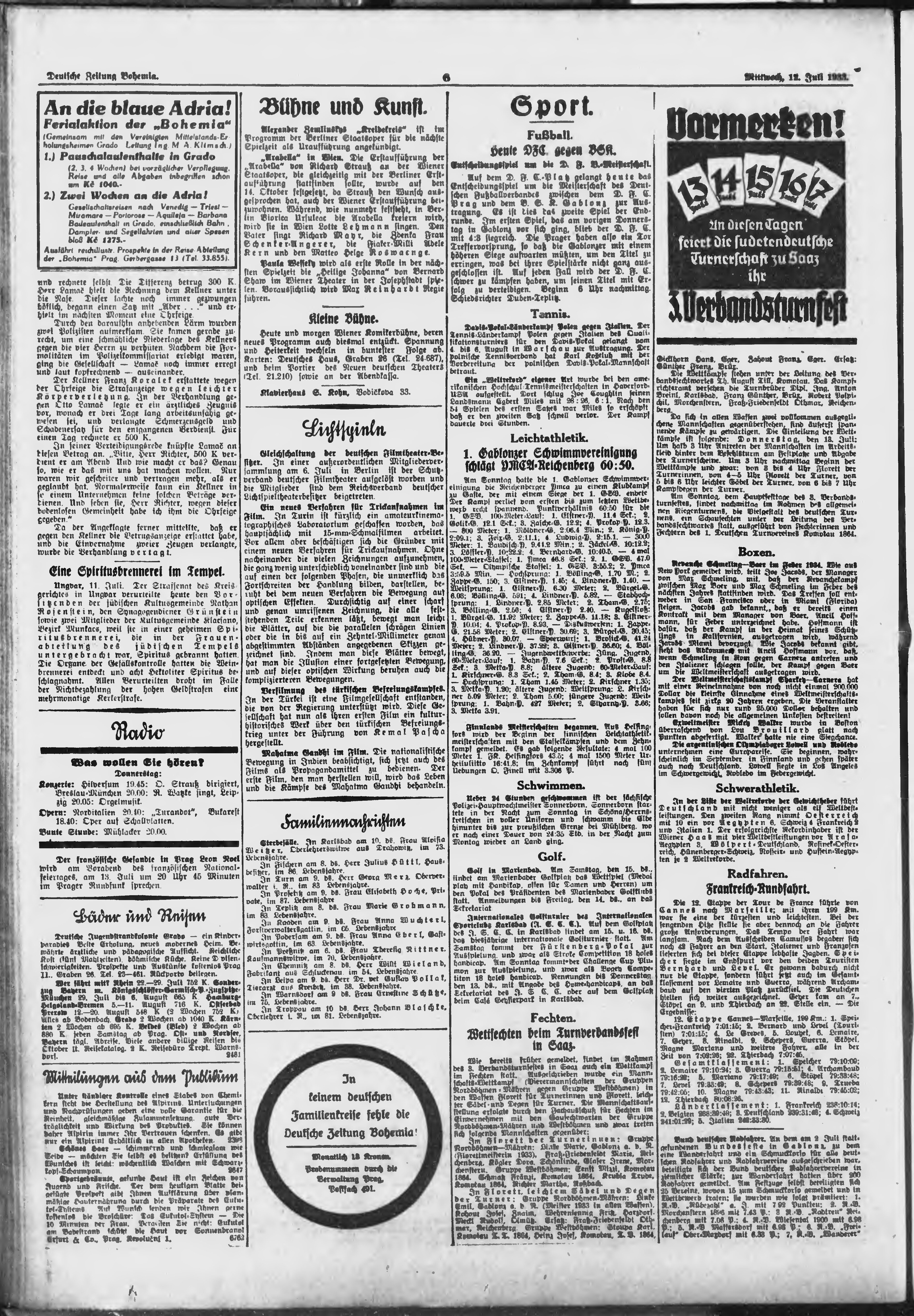 * Datum vydání výtisku: 12.7.1933 Číslo výtisku: 160 Poznámky k výtisku: ranní vydání;