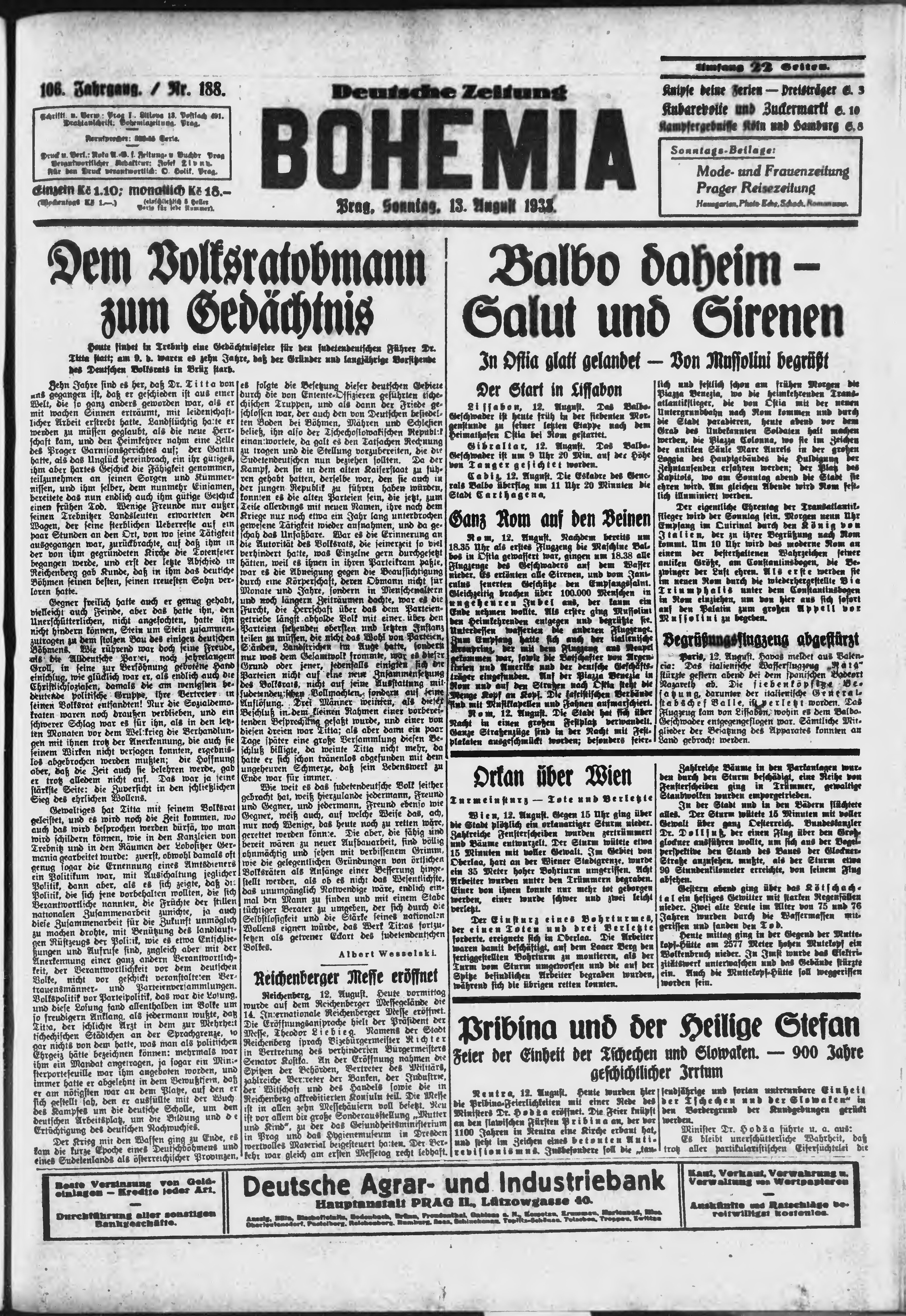 * Datum vydání výtisku: 13.8.1933 Číslo výtisku: 188 Poznámky k výtisku: ranní vydání;
