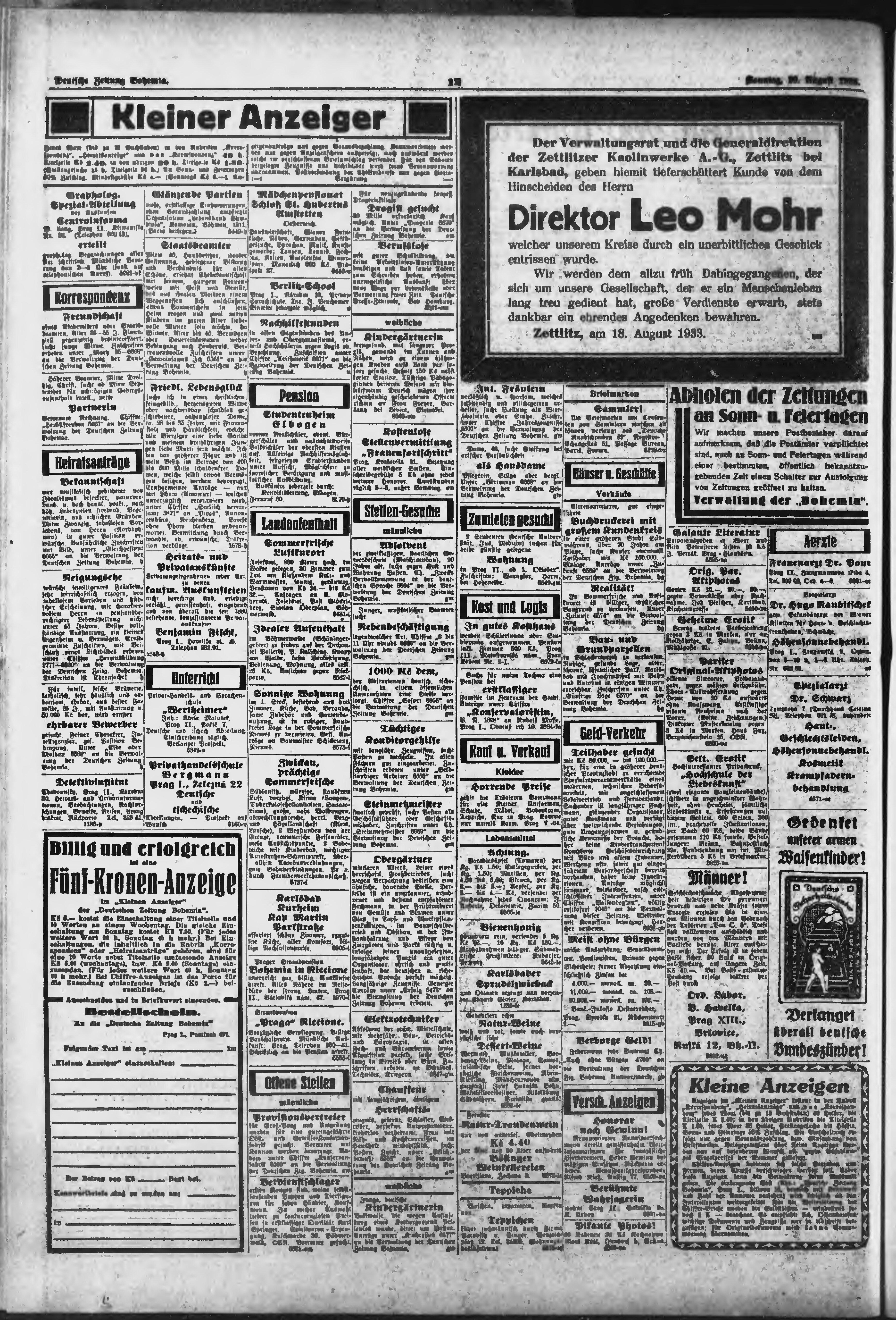 * Datum vydání výtisku: 20.8.1933 Číslo výtisku: 194 Poznámky k výtisku: ranní vydání;