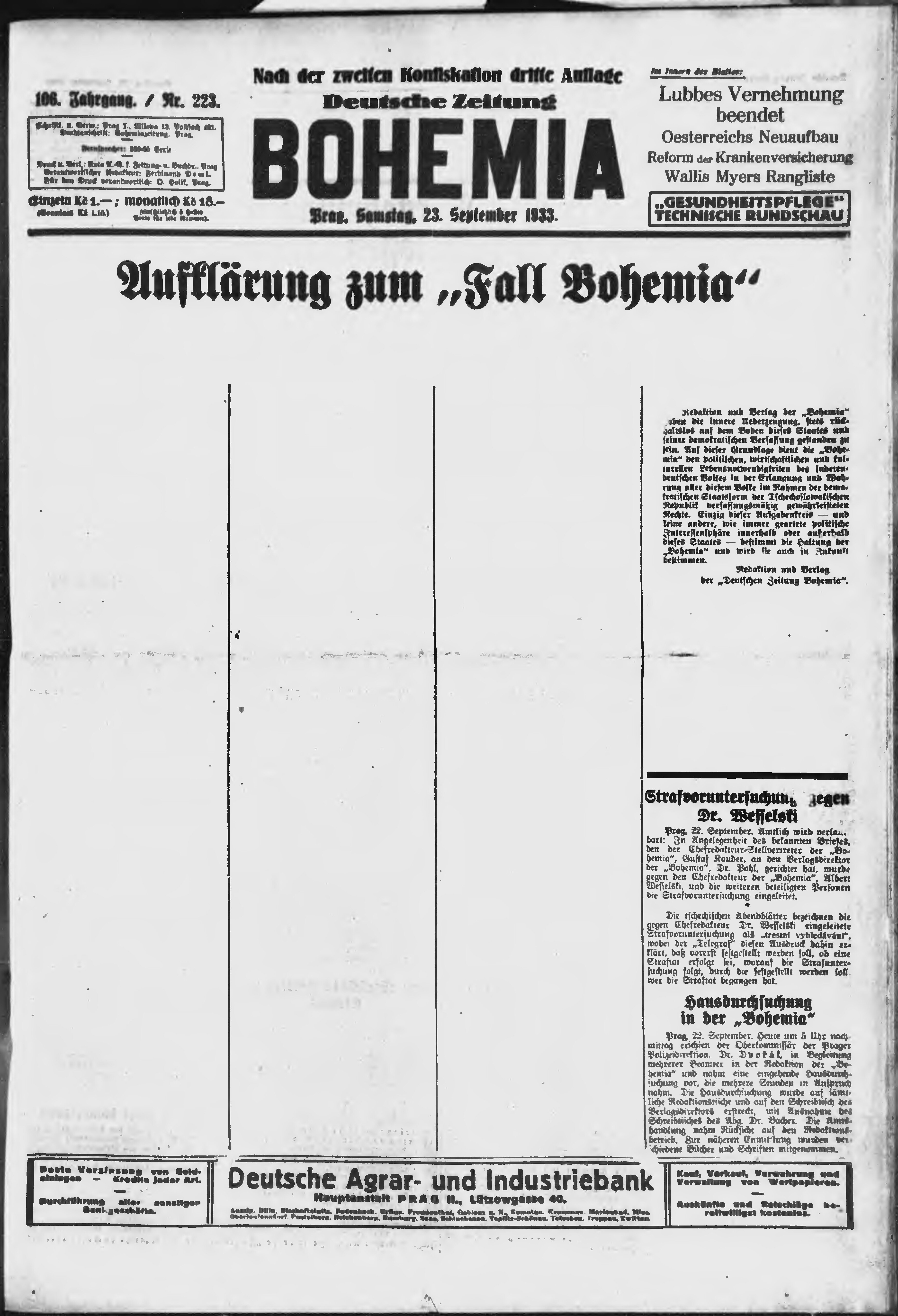 * Datum vydání výtisku: 23.9.1933 Číslo výtisku: 223 Poznámky k výtisku: ranní vydání;