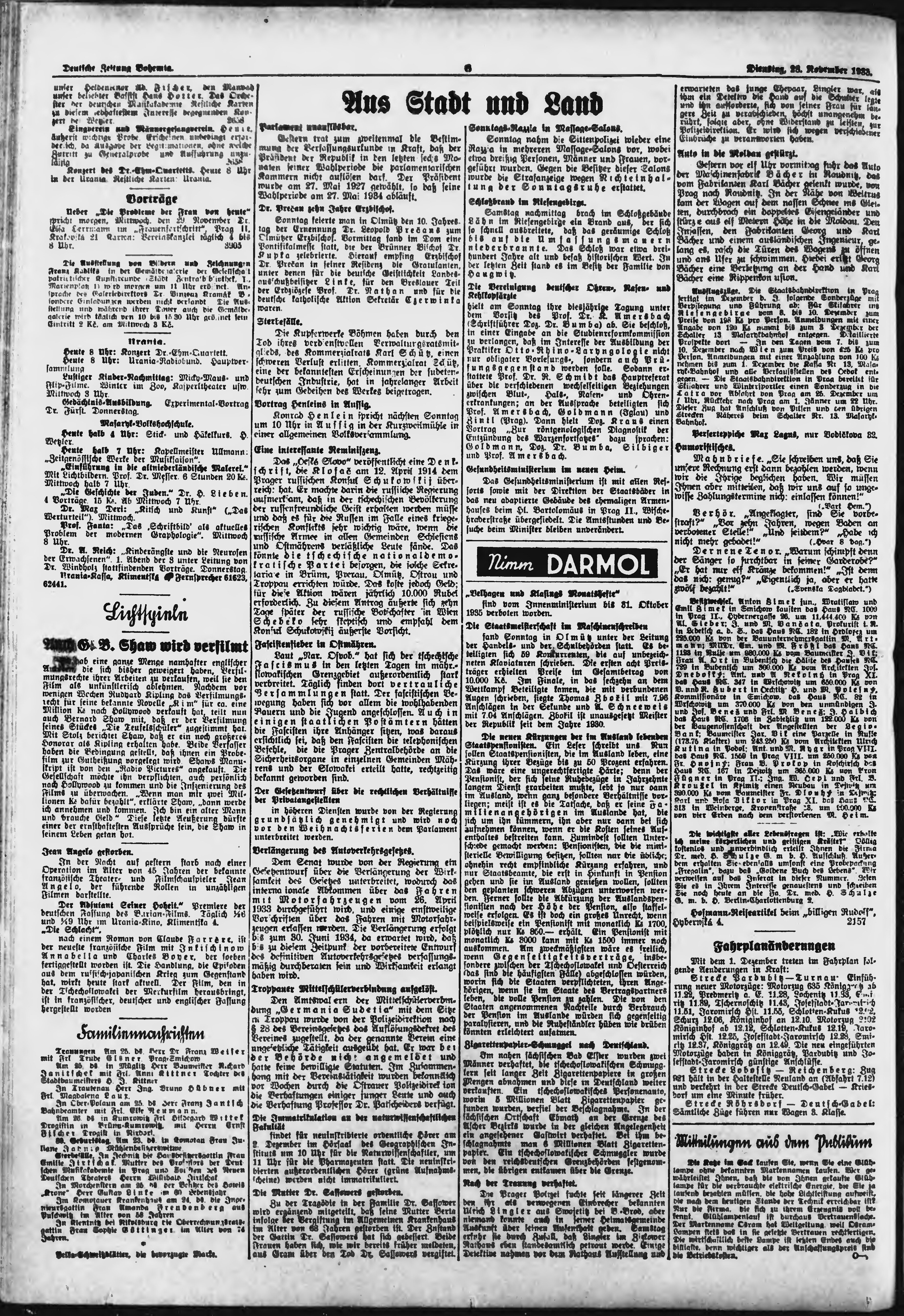 * Datum vydání výtisku: 28.11.1933 Číslo výtisku: 278 Poznámky k výtisku: ranní vydání;