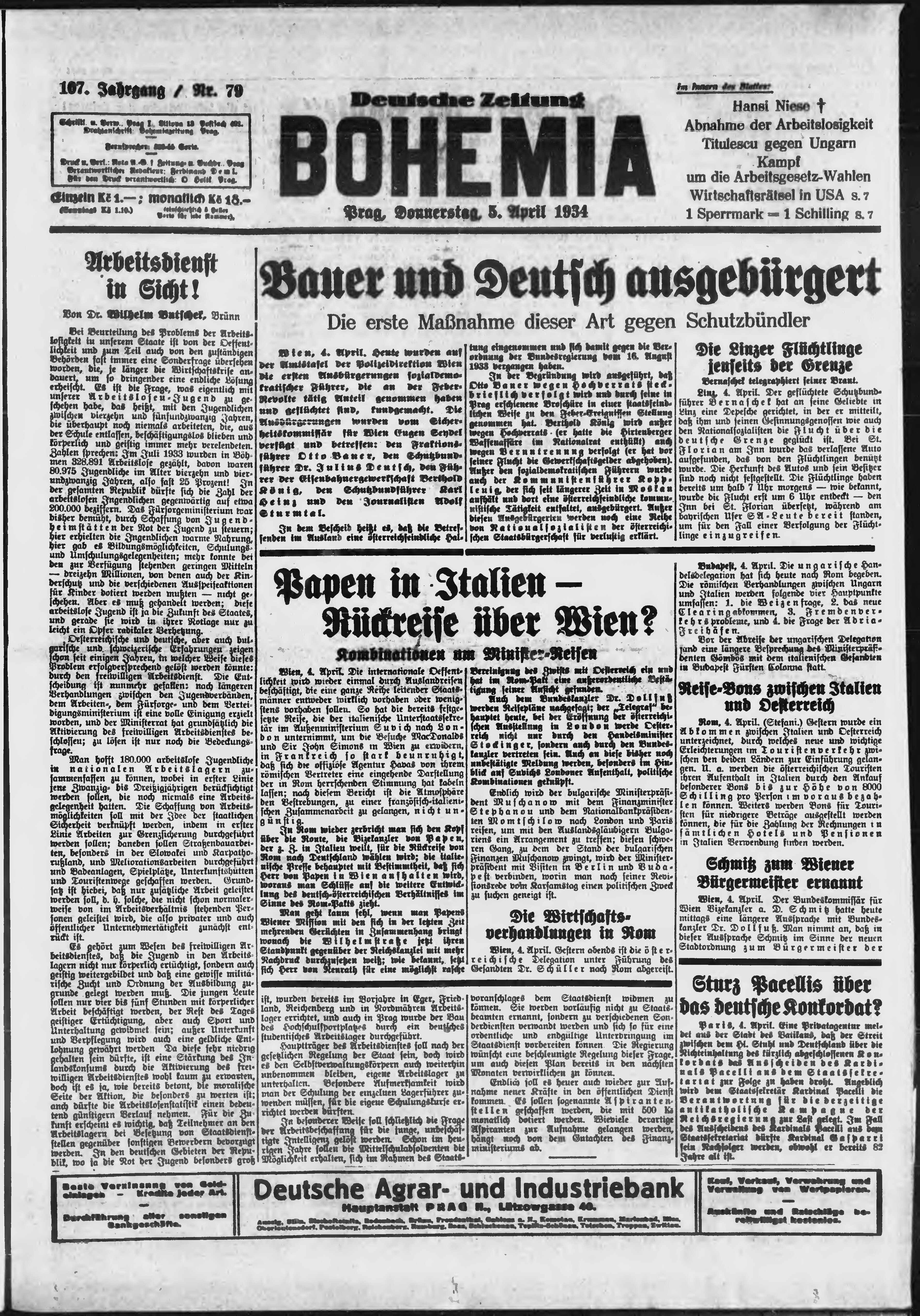 * Datum vydání výtisku: 5.4.1934 Číslo výtisku: 79 Poznámky k výtisku: ranní vydání;