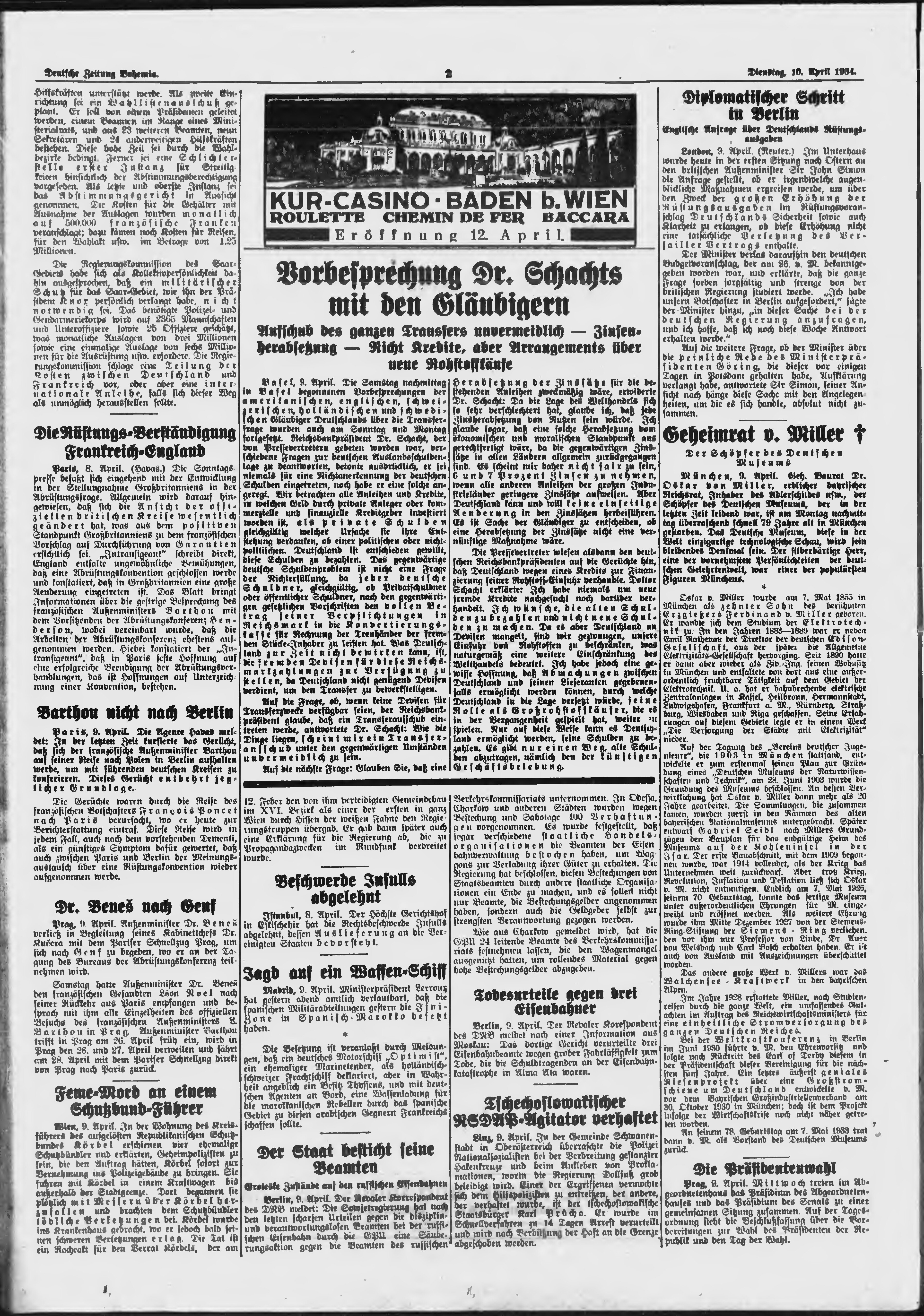 * Datum vydání výtisku: 10.4.1934 Číslo výtisku: 83 Poznámky k výtisku: ranní vydání;