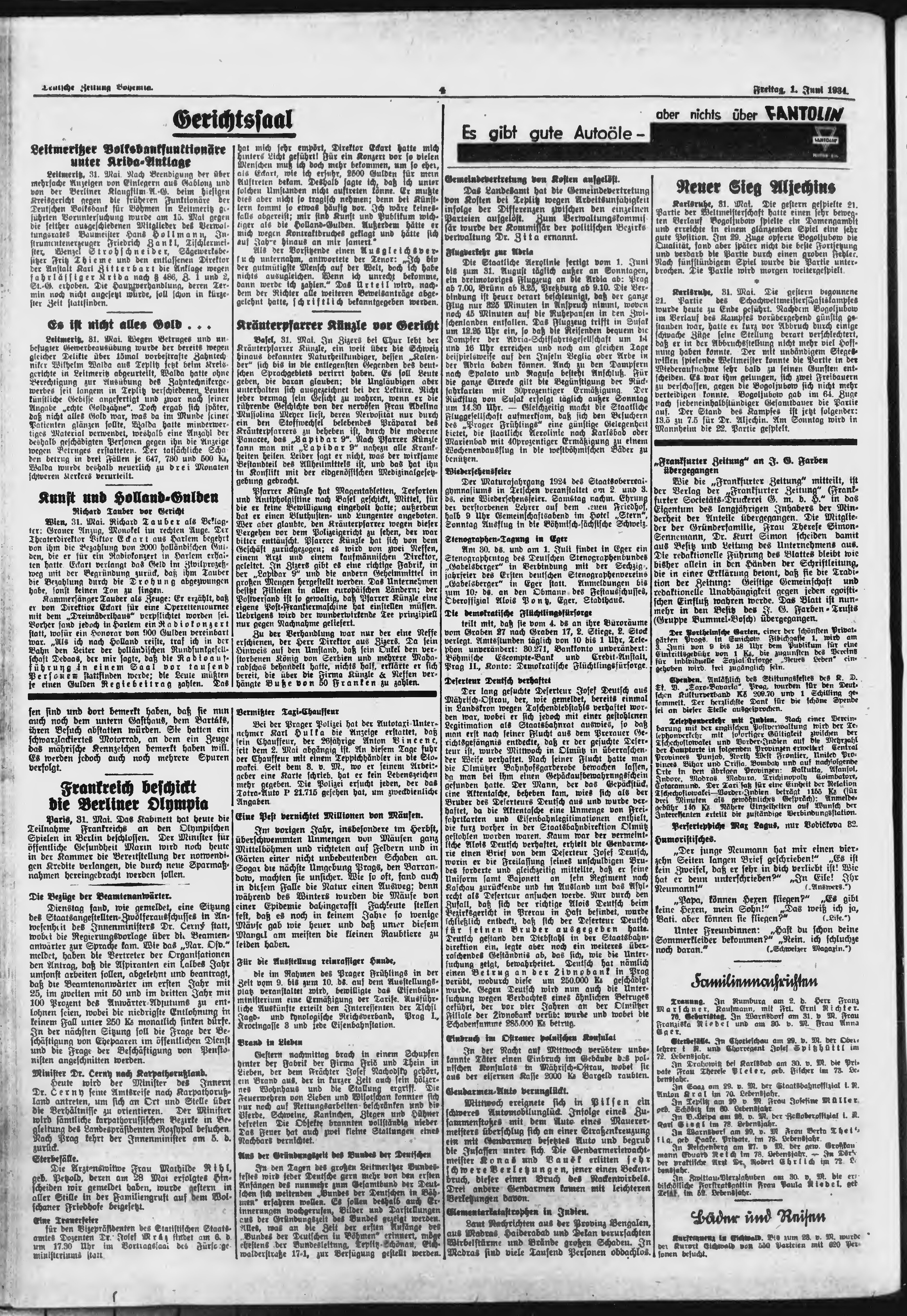 * Datum vydání výtisku: 1.6.1934 Číslo výtisku: 126 Poznámky k výtisku: ranní vydání;
