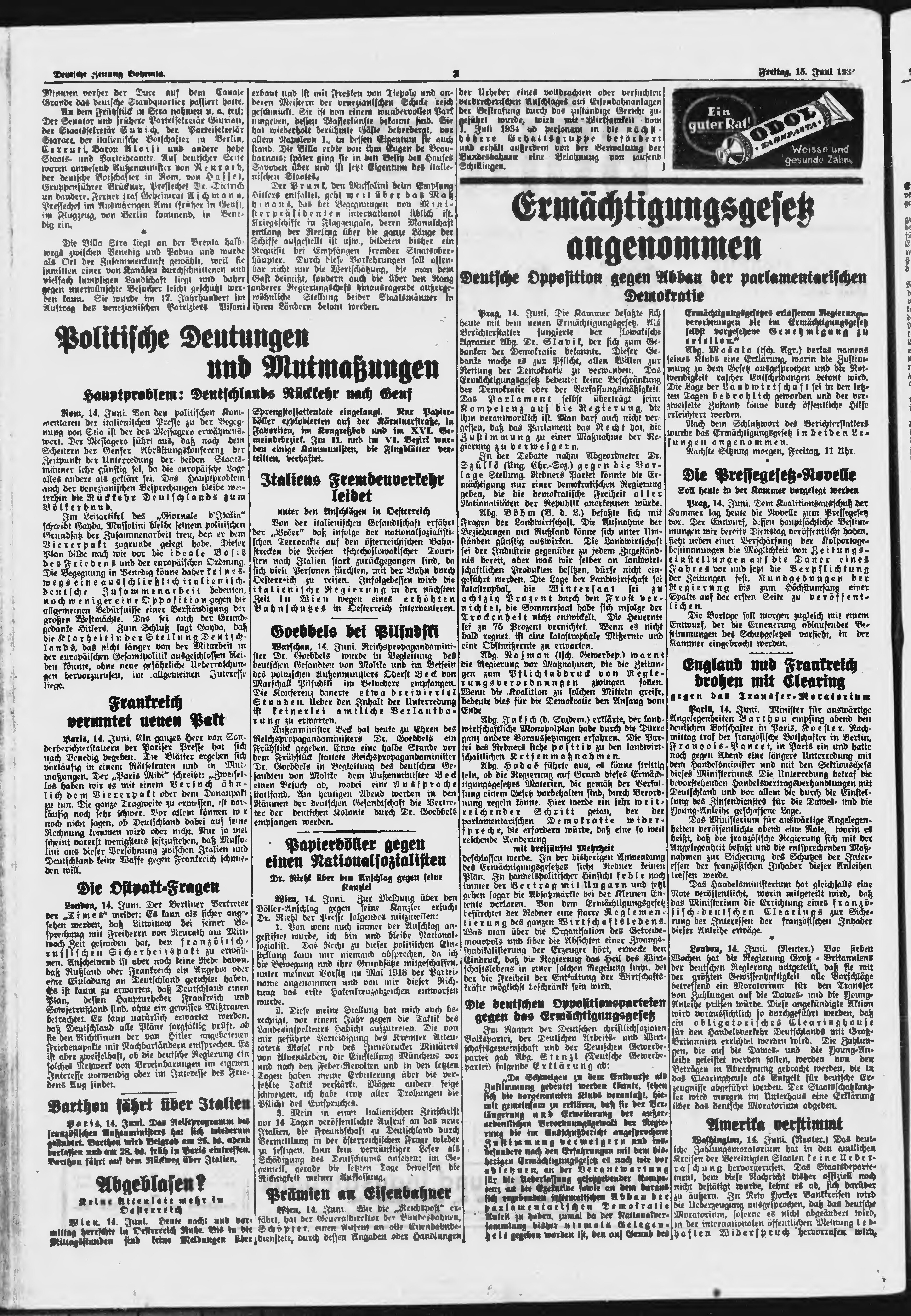 * Datum vydání výtisku: 15.6.1934 Číslo výtisku: 138 Poznámky k výtisku: ranní vydání;