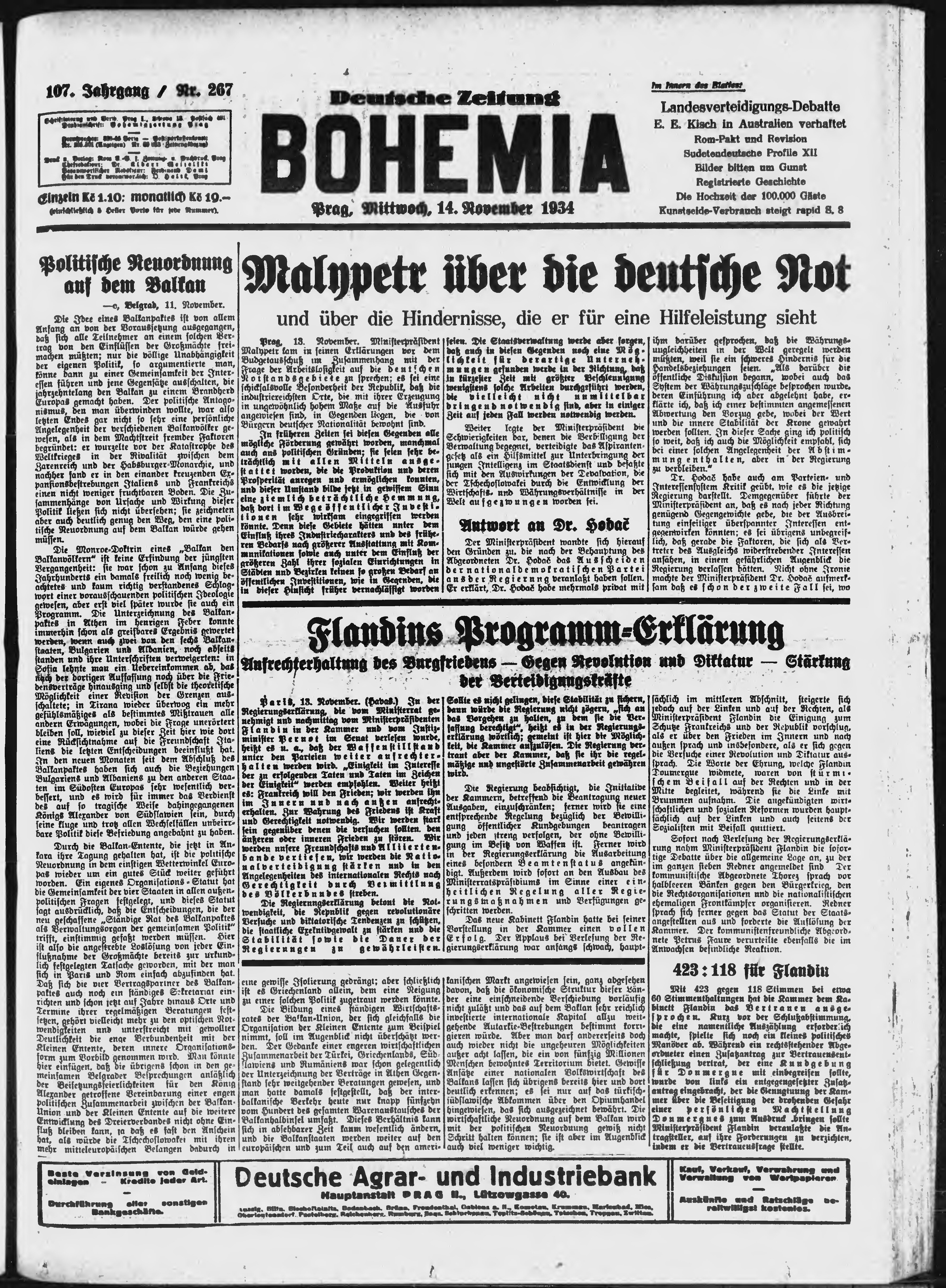 * Datum vydání výtisku: 14.11.1934 Číslo výtisku: 267 Poznámky k výtisku: ranní vydání;