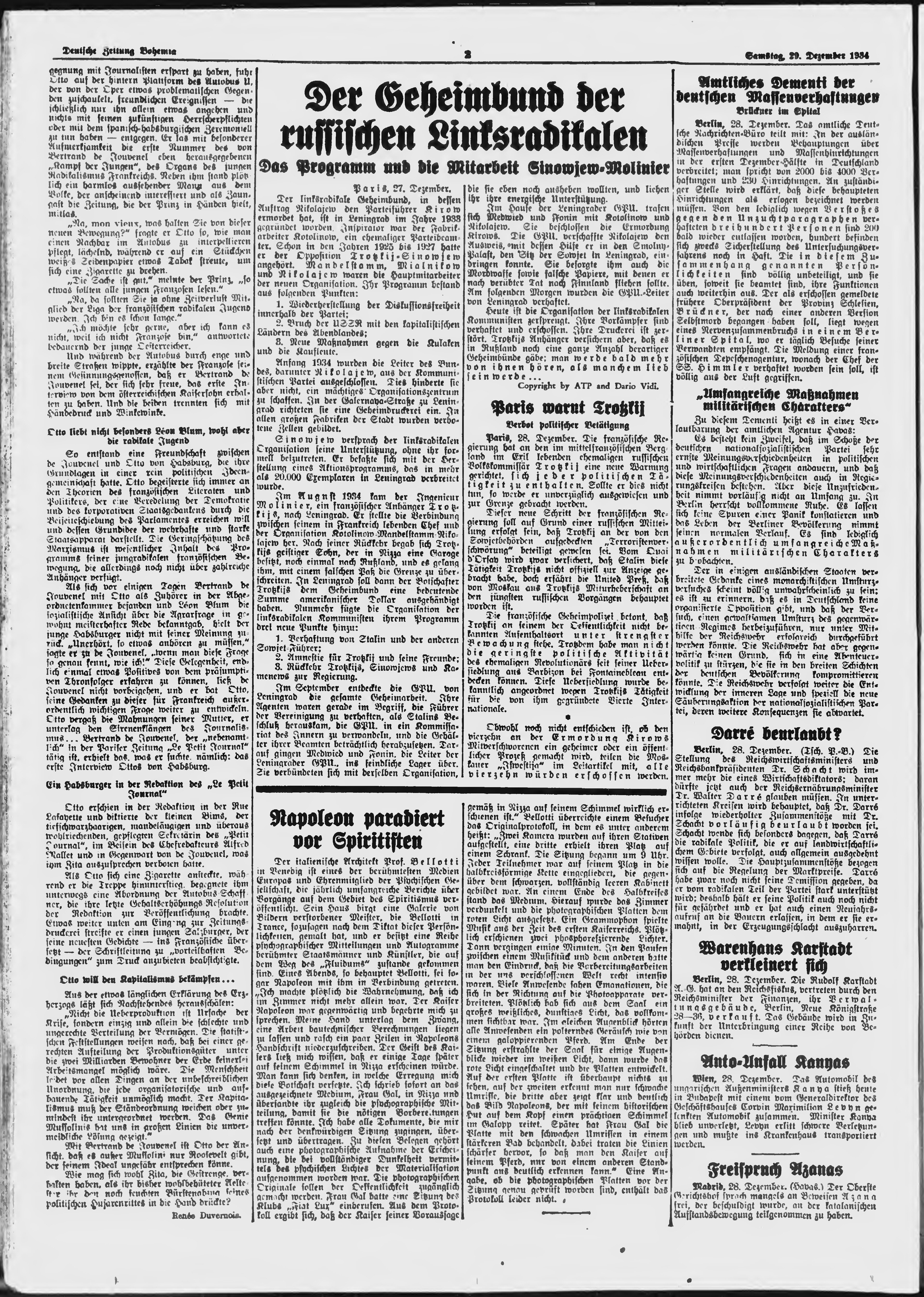 * Datum vydání výtisku: 29.12.1934 Číslo výtisku: 303 Poznámky k výtisku: ranní vydání;