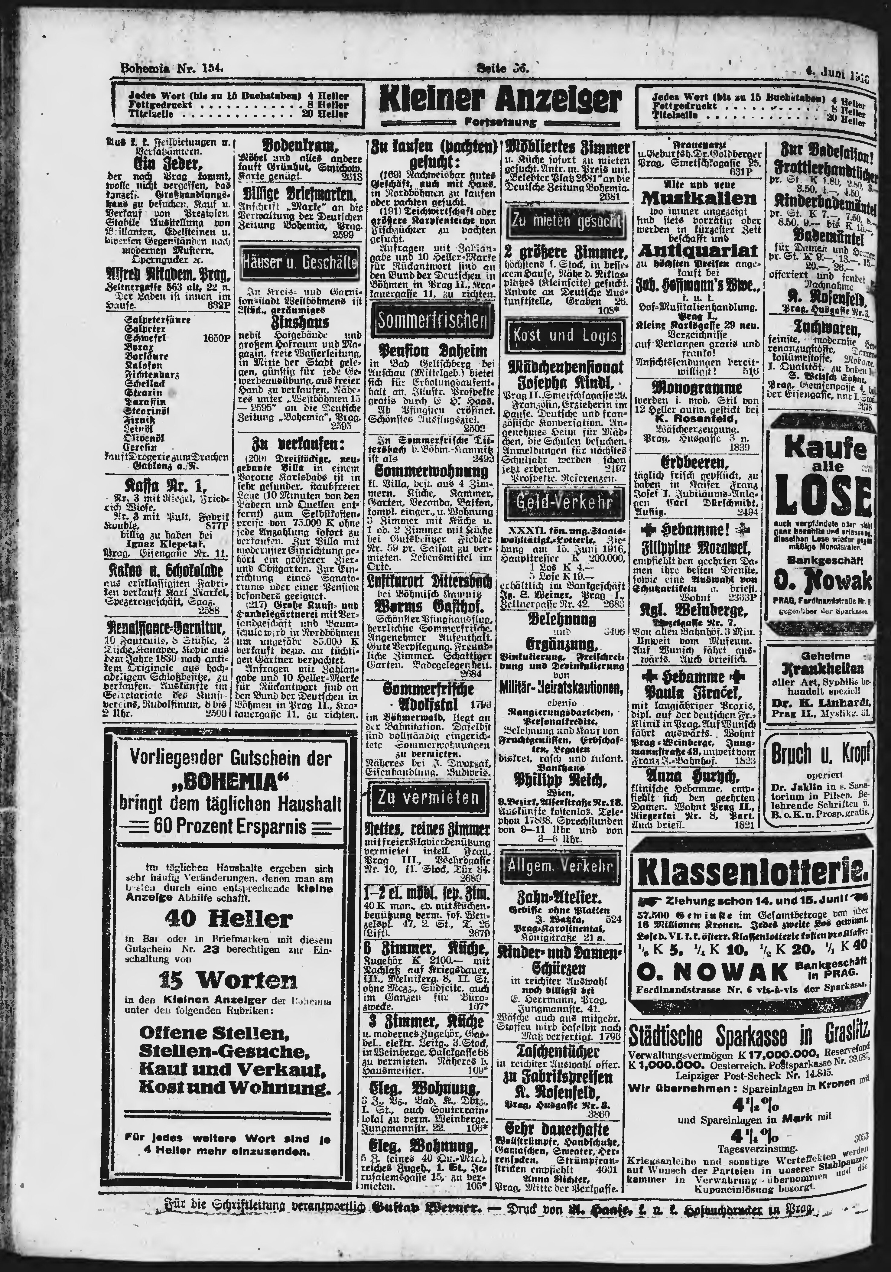 * Datum vydání výtisku: 4.6.1916 Číslo výtisku: 154 Poznámky k výtisku: ranní vydání;