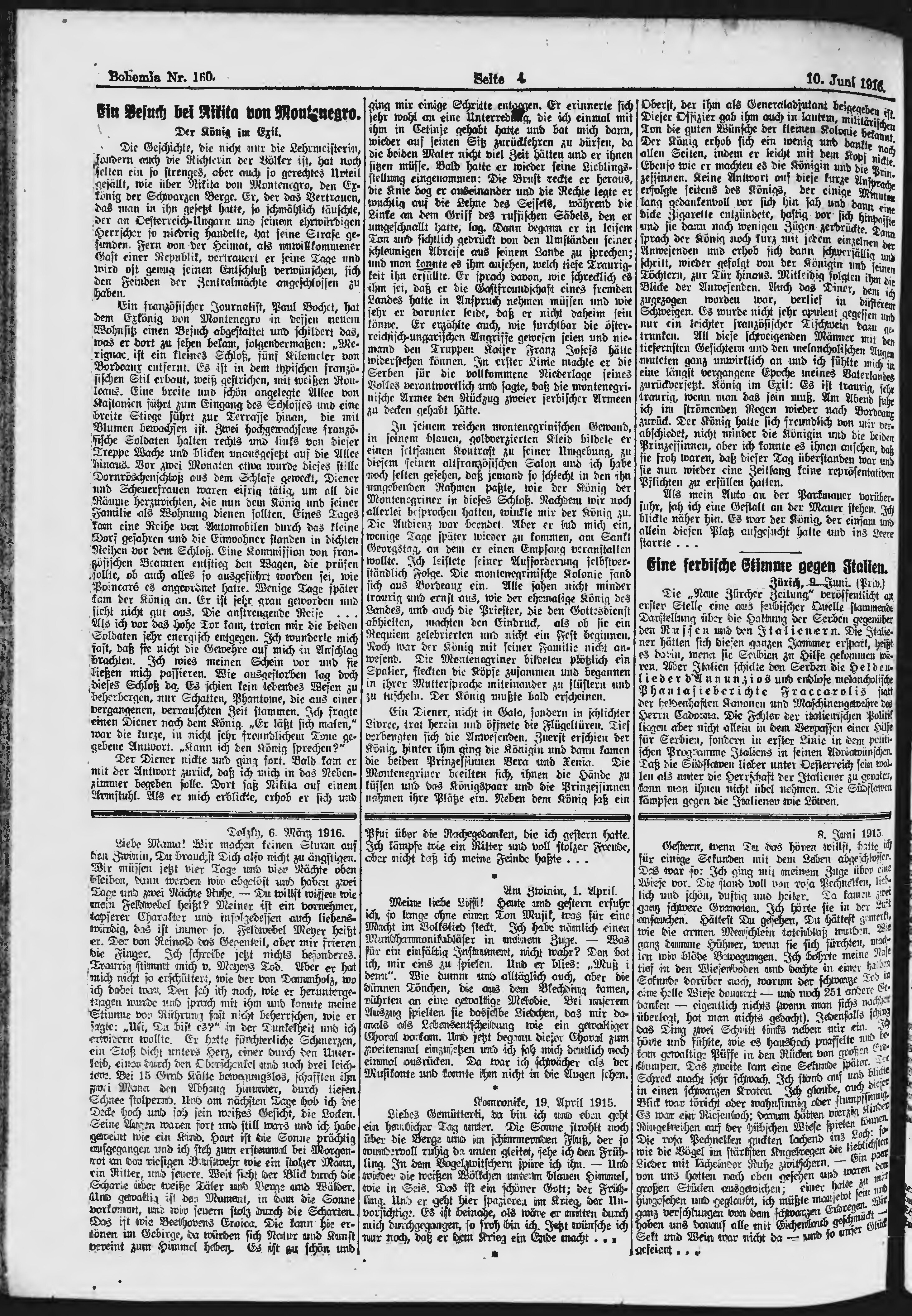 * Datum vydání výtisku: 10.6.1916 Číslo výtisku: 160 Poznámky k výtisku: ranní vydání;