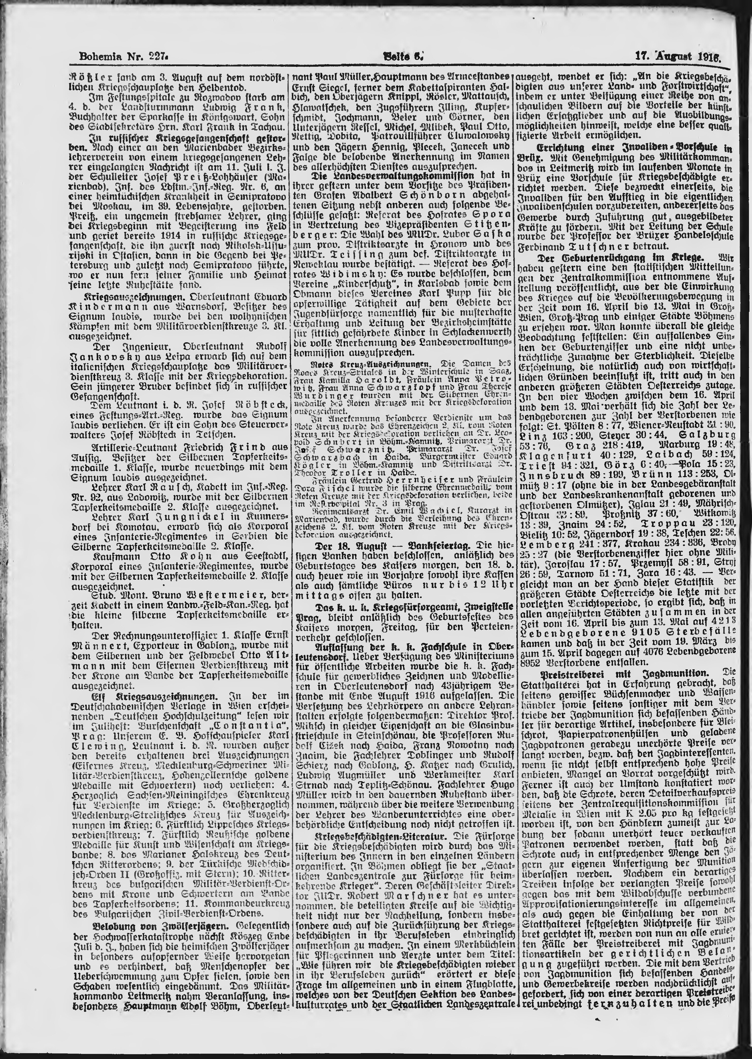 * Datum vydání výtisku: 17.8.1916 Číslo výtisku: 227 Poznámky k výtisku: ranní vydání;