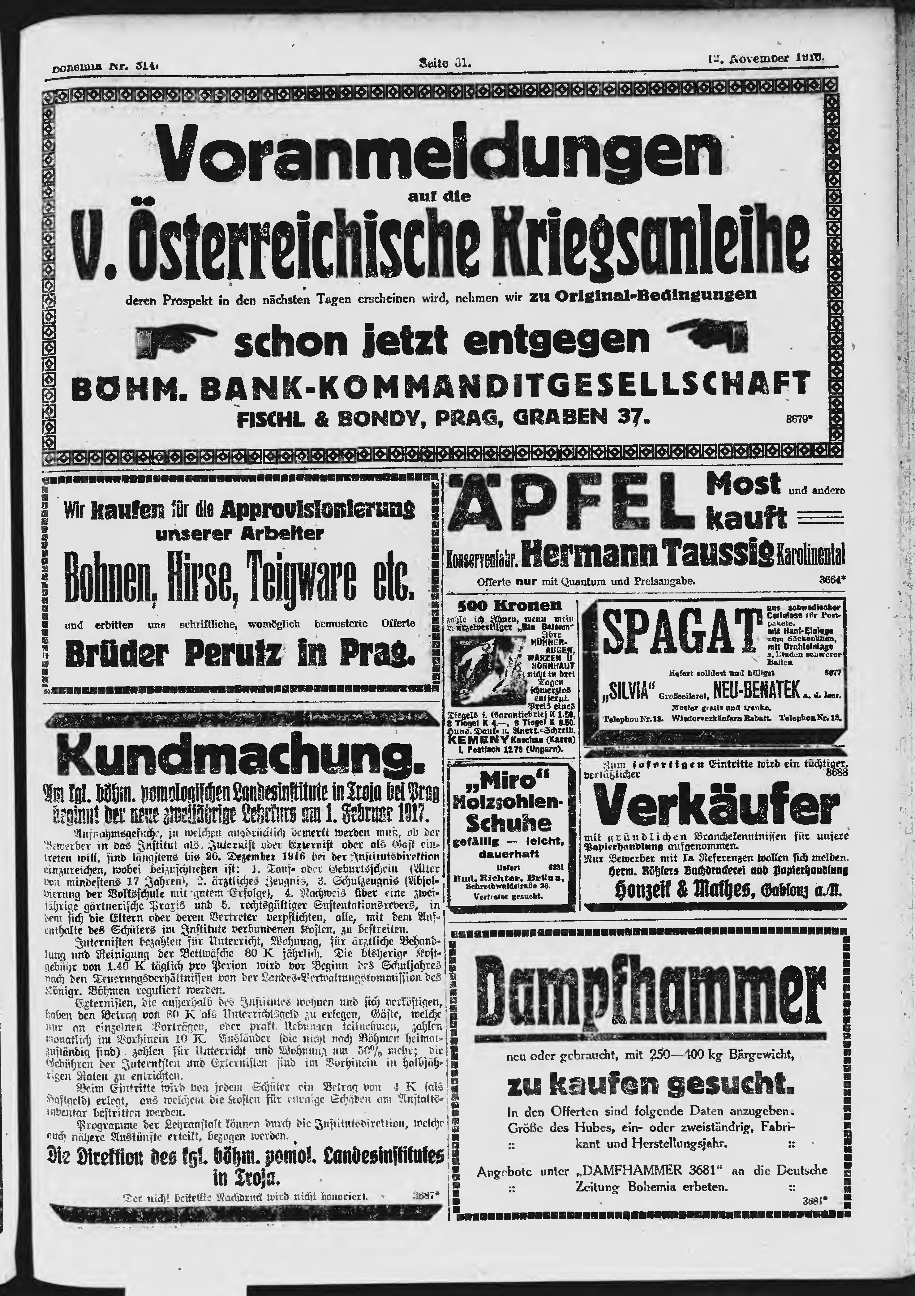 * Datum vydání výtisku: 12.11.1916 Číslo výtisku: 314 Poznámky k výtisku: ranní vydání;