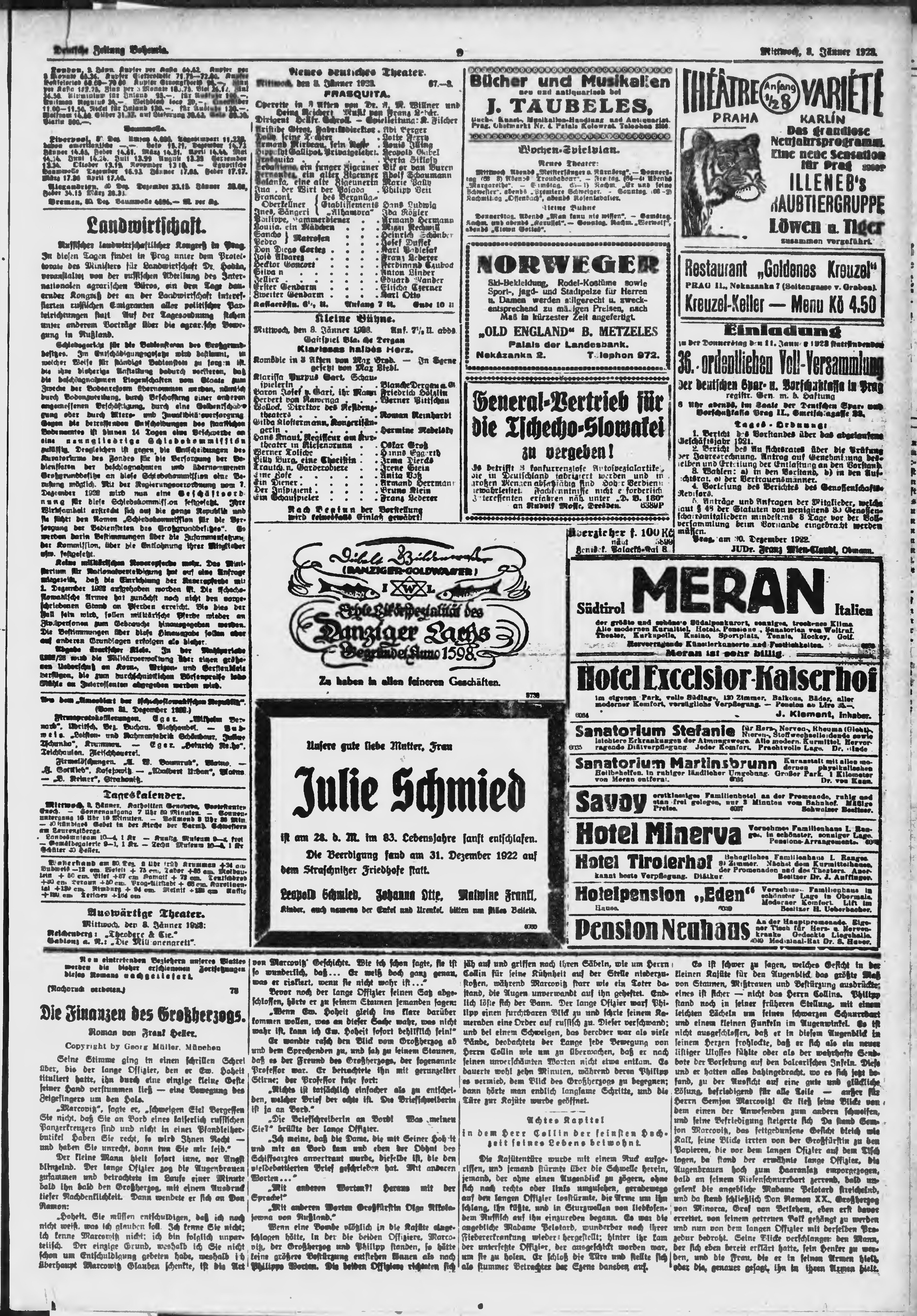 * Datum vydání výtisku: 3.1.1923 Číslo výtisku: 1 Poznámky k výtisku: ranní vydání;