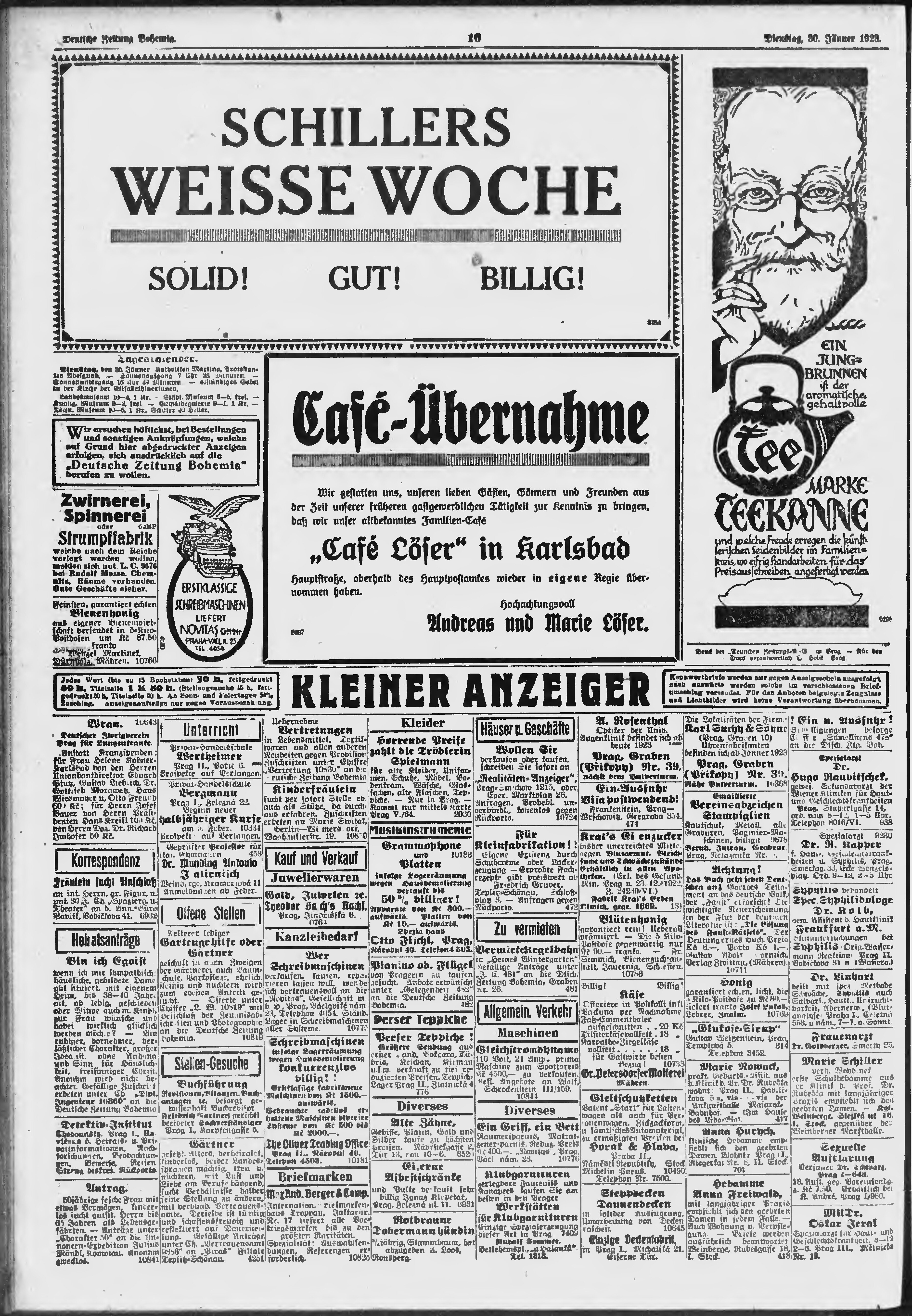 * Datum vydání výtisku: 30.1.1923 Číslo výtisku: 23 Poznámky k výtisku: ranní vydání;