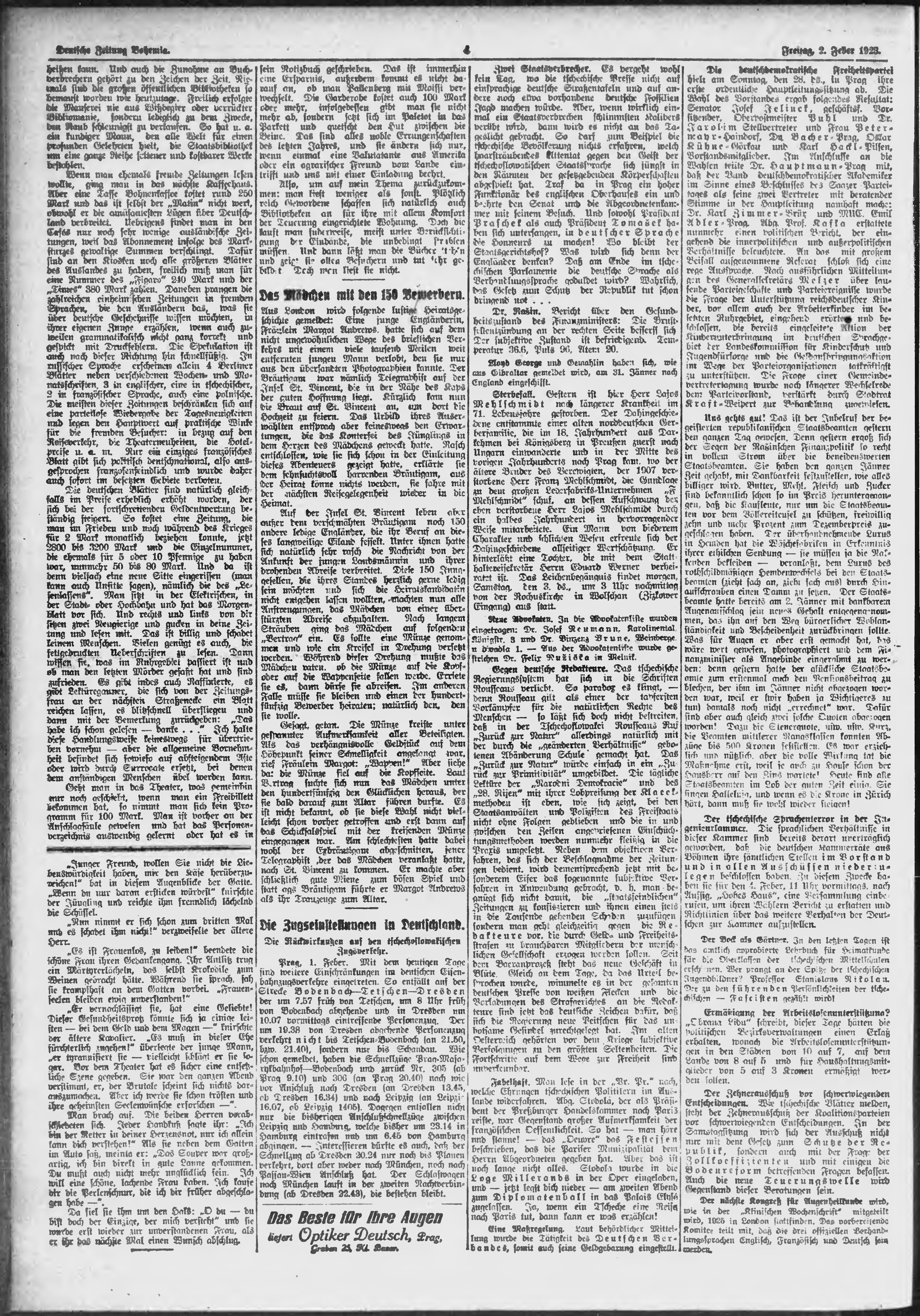 * Datum vydání výtisku: 2.2.1923 Číslo výtisku: 26 Poznámky k výtisku: ranní vydání;