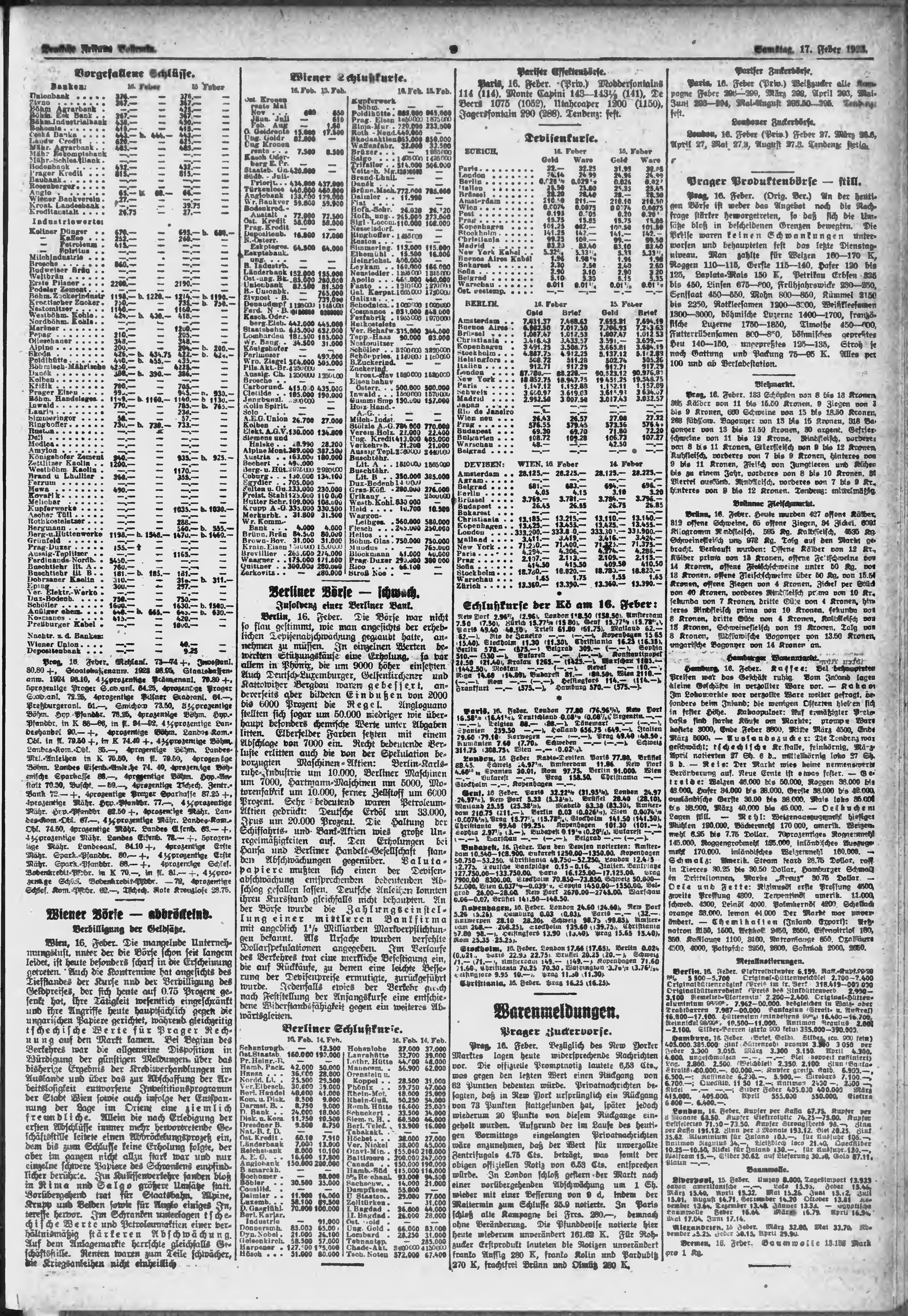 * Datum vydání výtisku: 17.2.1923 Číslo výtisku: 39 Poznámky k výtisku: ranní vydání;