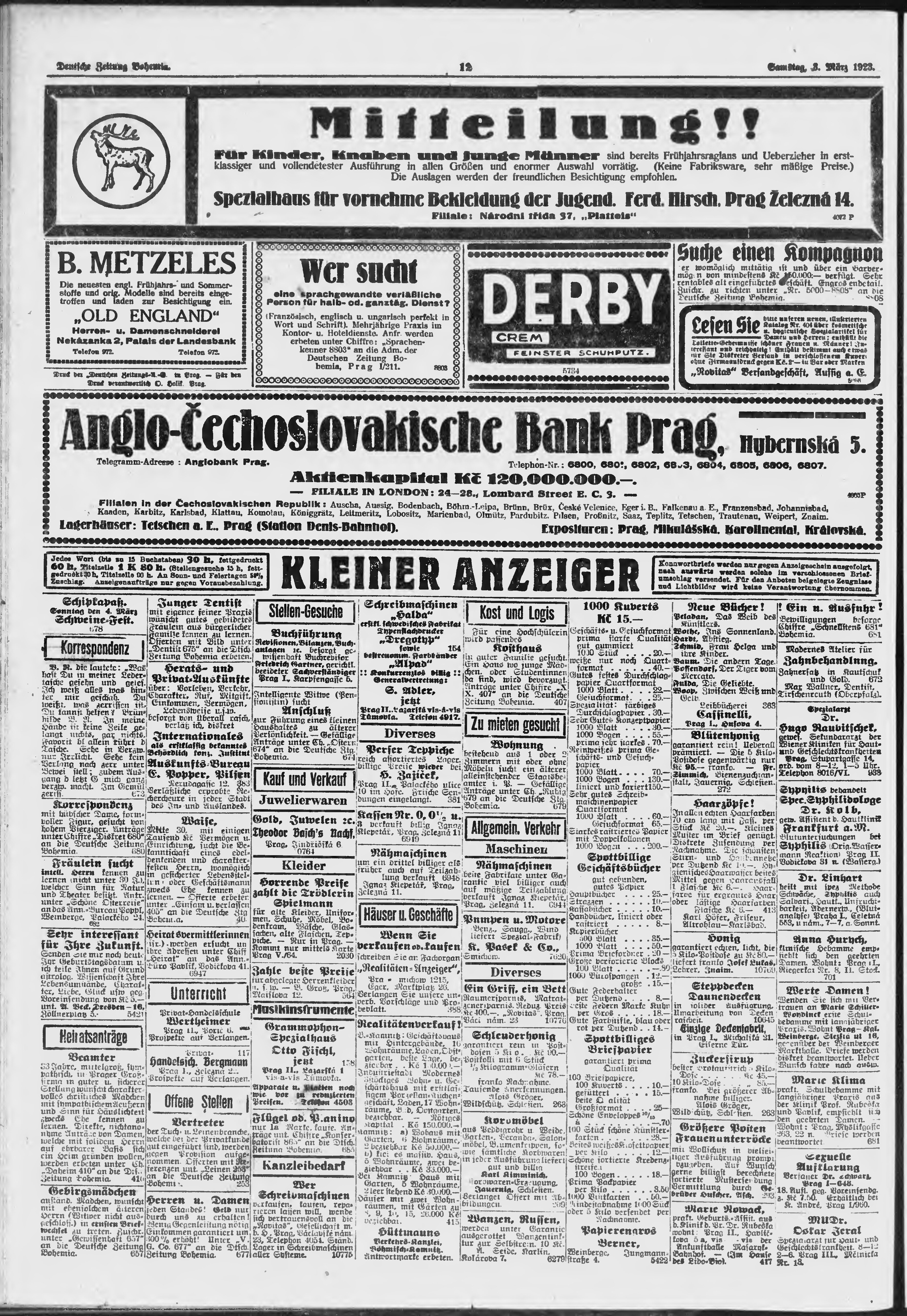 * Datum vydání výtisku: 3.3.1923 Číslo výtisku: 51 Poznámky k výtisku: ranní vydání;