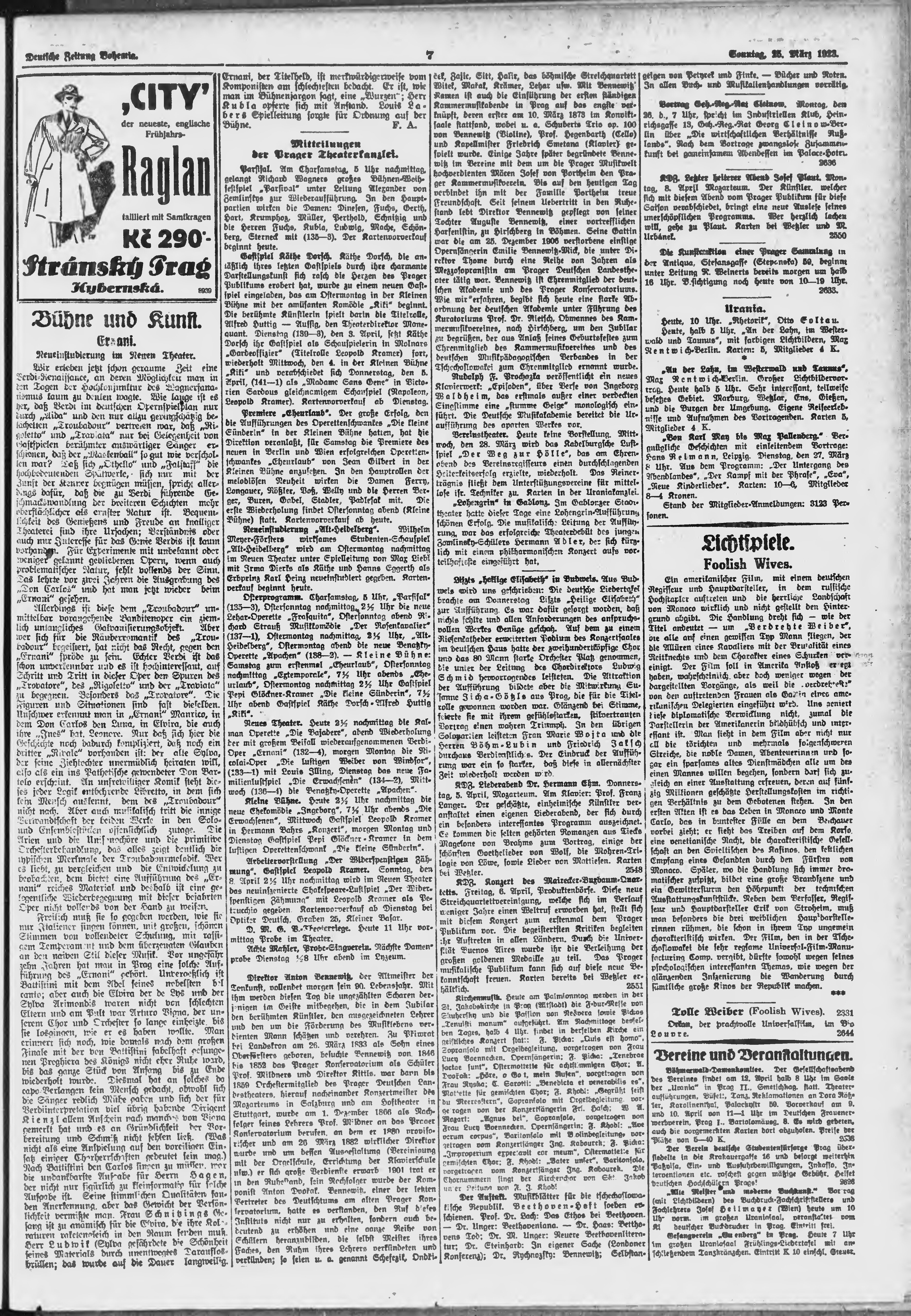 * Datum vydání výtisku: 25.3.1923 Číslo výtisku: 70 Poznámky k výtisku: ranní vydání;