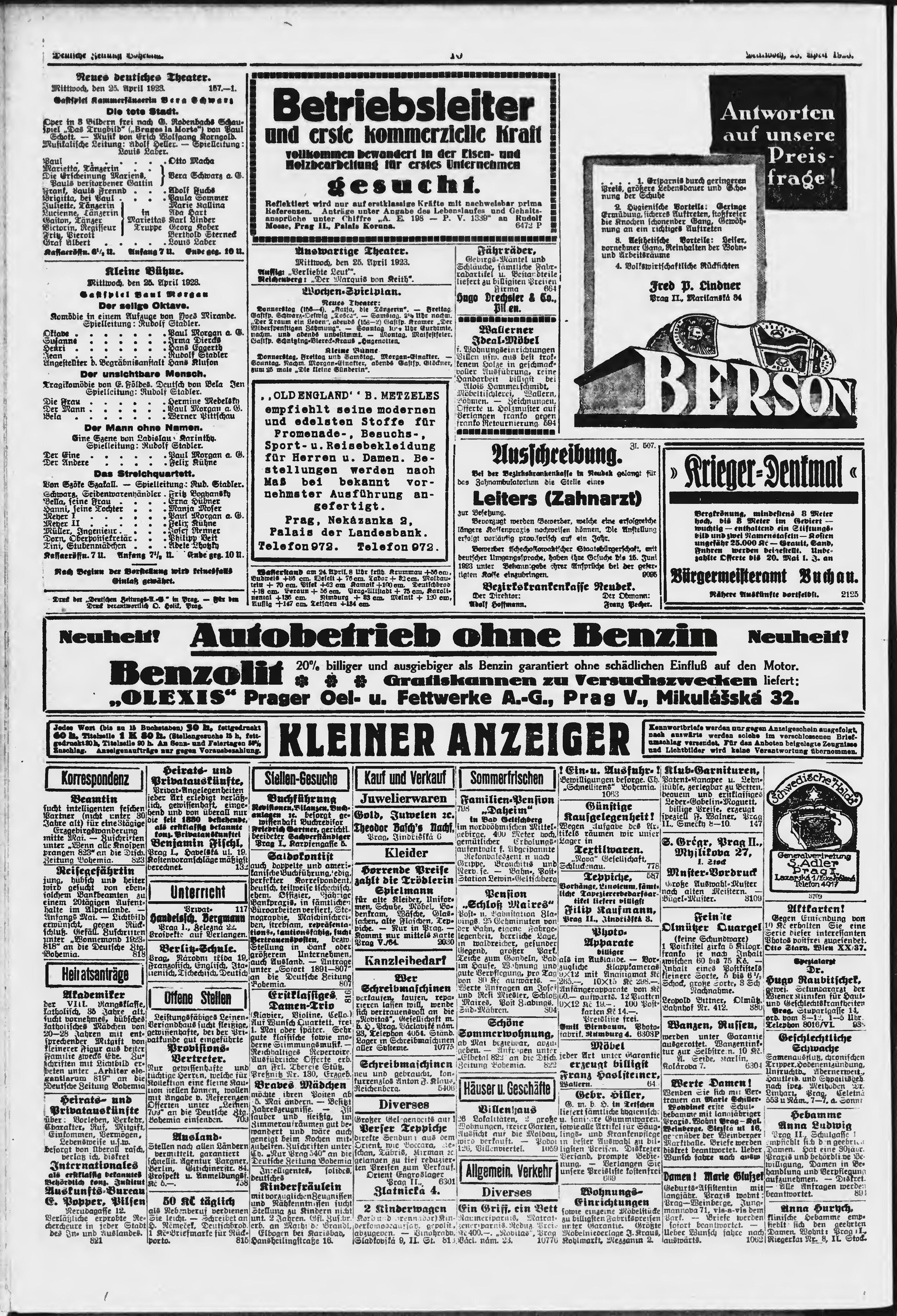* Datum vydání výtisku: 25.4.1923 Číslo výtisku: 95 Poznámky k výtisku: ranní vydání;